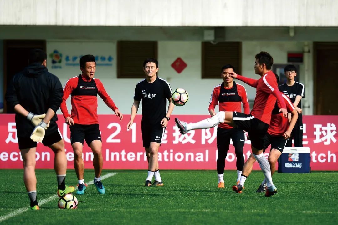 ▲2018年3月26日,湖南长沙,孙继海 (中) 指导中国男足U21队员训练,备战U21国际足球友谊赛 图/视觉中国