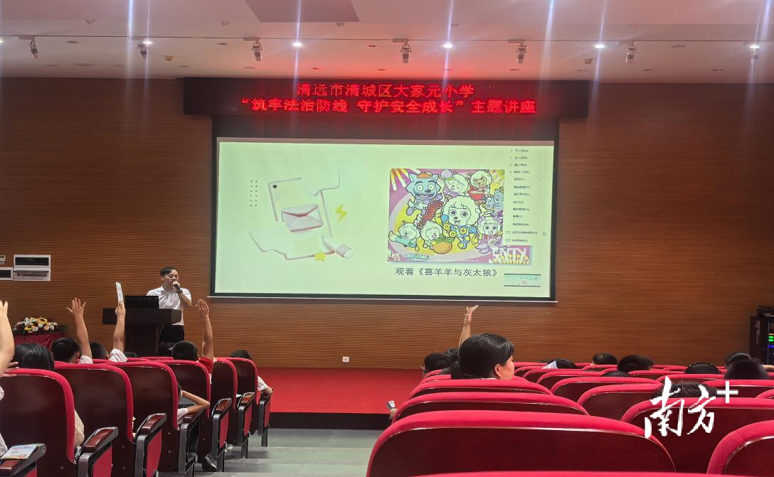 清城区石角镇在大家元小学开展“筑牢法治防线 守护安全成长”主题普法活动。 骆瑞华 摄