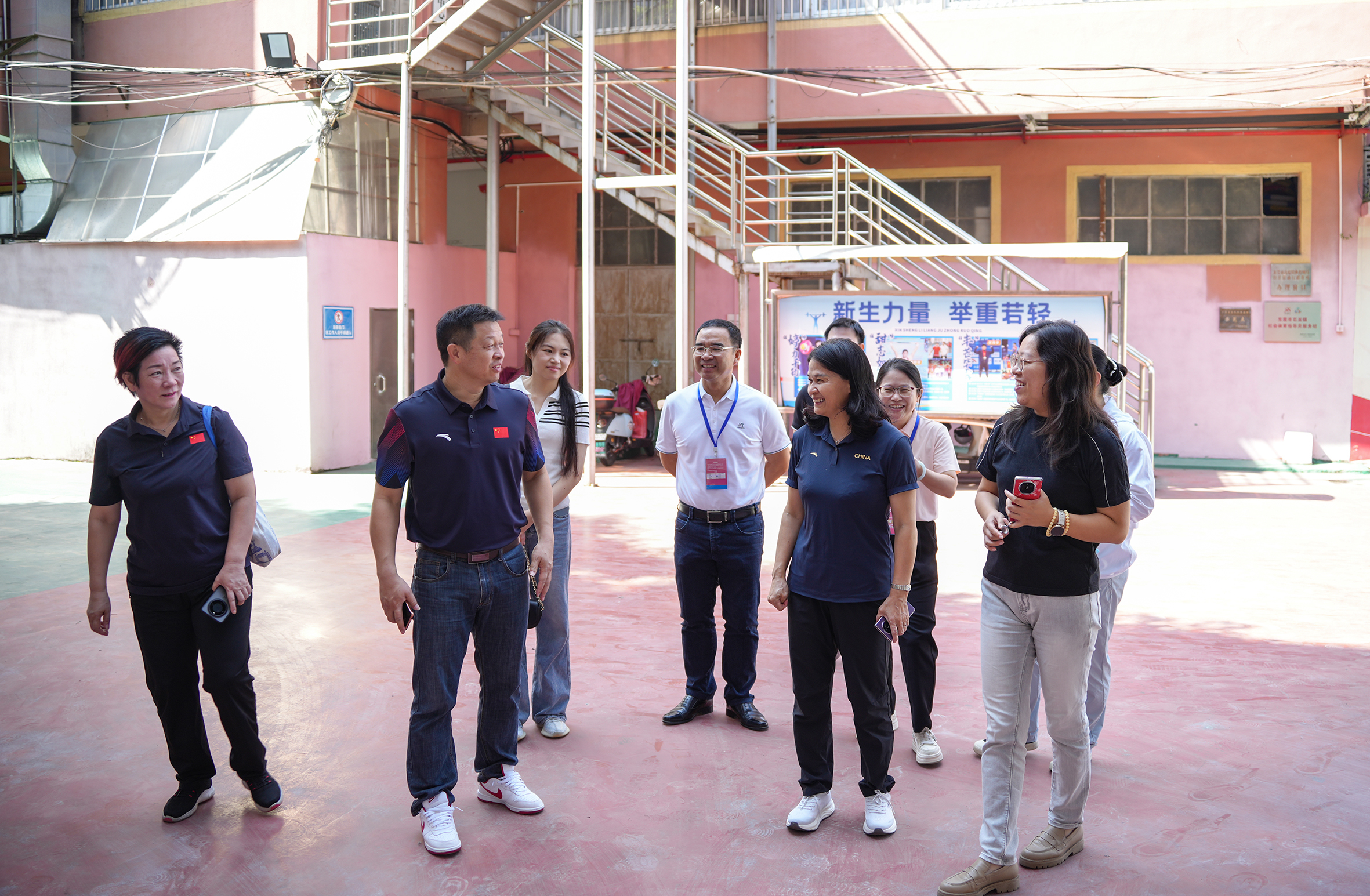 9月27日,广东省二沙体育训练中心党委书记冼东妹、国家体育总局举摔柔中心举重部副部长李宁到石龙举重训练基地,实地调研场馆翻新改造工作。石龙镇领导王永权、镇相关部门负责人等陪同调研。调研进一步明确了训练基地的升级方向与服务标准,为基地以完善设施和优质服务顺利投入十五运会使用提供坚实支撑。