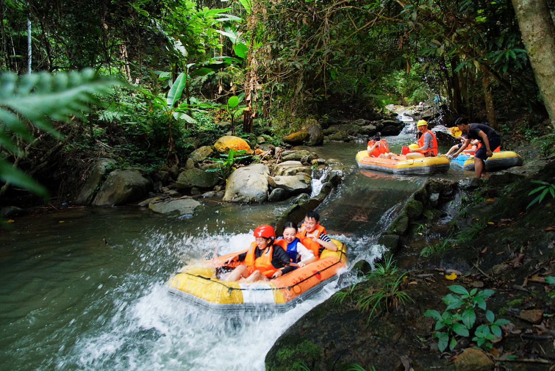 2.暗洞漂流:漂流河全长1公里,落差150米,漂流全程约1小时,可以体验凉爽刺激的失重感,欣赏岸边郁郁葱葱的树木,抬头可以仰望如宝石般湛蓝的天空。重点是对宠物友好,家里的小猫小狗也可以一起体验凉爽刺激的漂流。