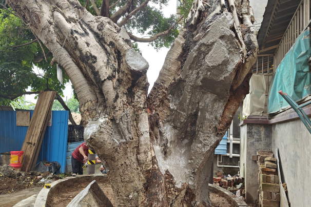 自2023年绿美广东古树名木保护提升行动启动以来,东莞市林业局、东莞市林业科学研究所依托精准的资源数据与细致的现地调查,每年筛选出一批濒危古树,严格按照《古树抢救复壮规程》,累计为54株古树制定“一树一策” 复壮方案。通过五大核心措施改善古树长势与生境,也为后续保护工作积累了宝贵经验。