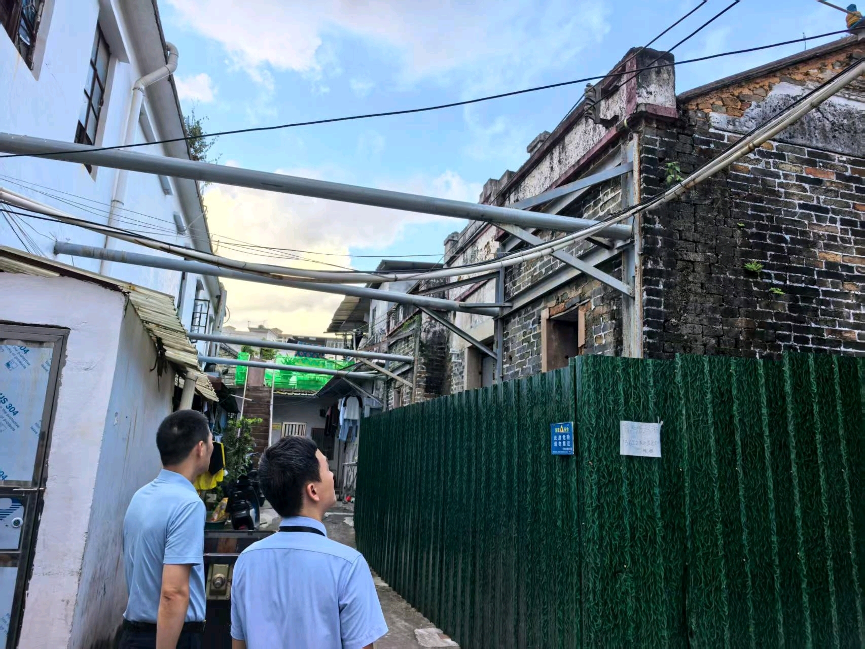 “危房不住人、人不住危房!”9月23日傍晚,随着台风“桦加沙”逼近,龙岗住建局对龙城街道郭屋村3栋隐患房屋进行“回头看”,锈蚀钢结构加固完成、警示围挡全部换新。至此,龙岗区已对存在严重安全隐患的房屋已全部落实“楼栋清空、封闭围挡、专人巡查”硬措施,为迎战台风筑起一道“铜墙铁壁”。