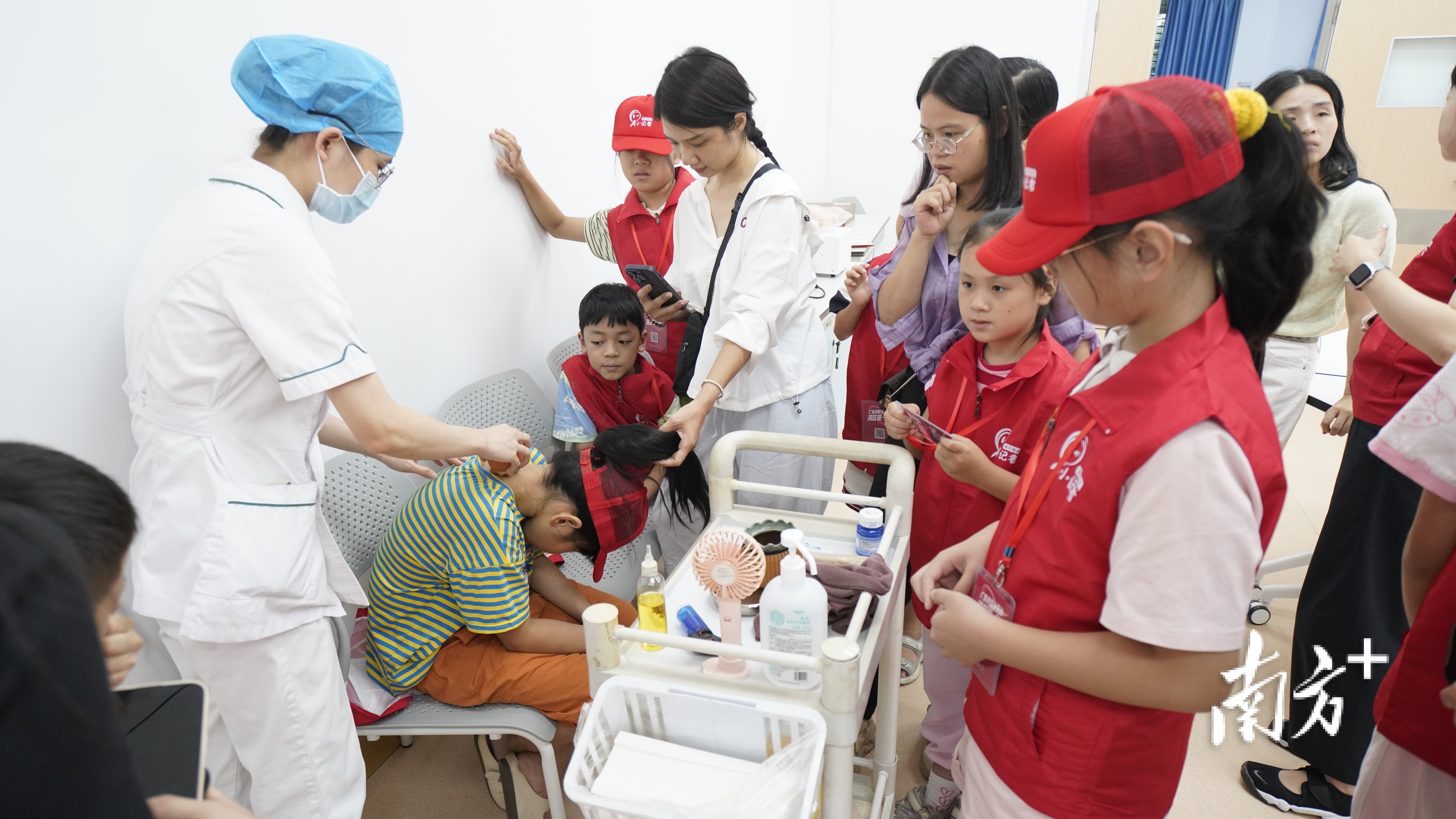 同时,医院联合南方报业传媒集团梅州记者站举办“南方报业小记者”活动,组织小记者走进中药房、针灸科、博物馆,通过识草药、学推拿、做香囊等互动体验,让客家少年近距离接触中医药。