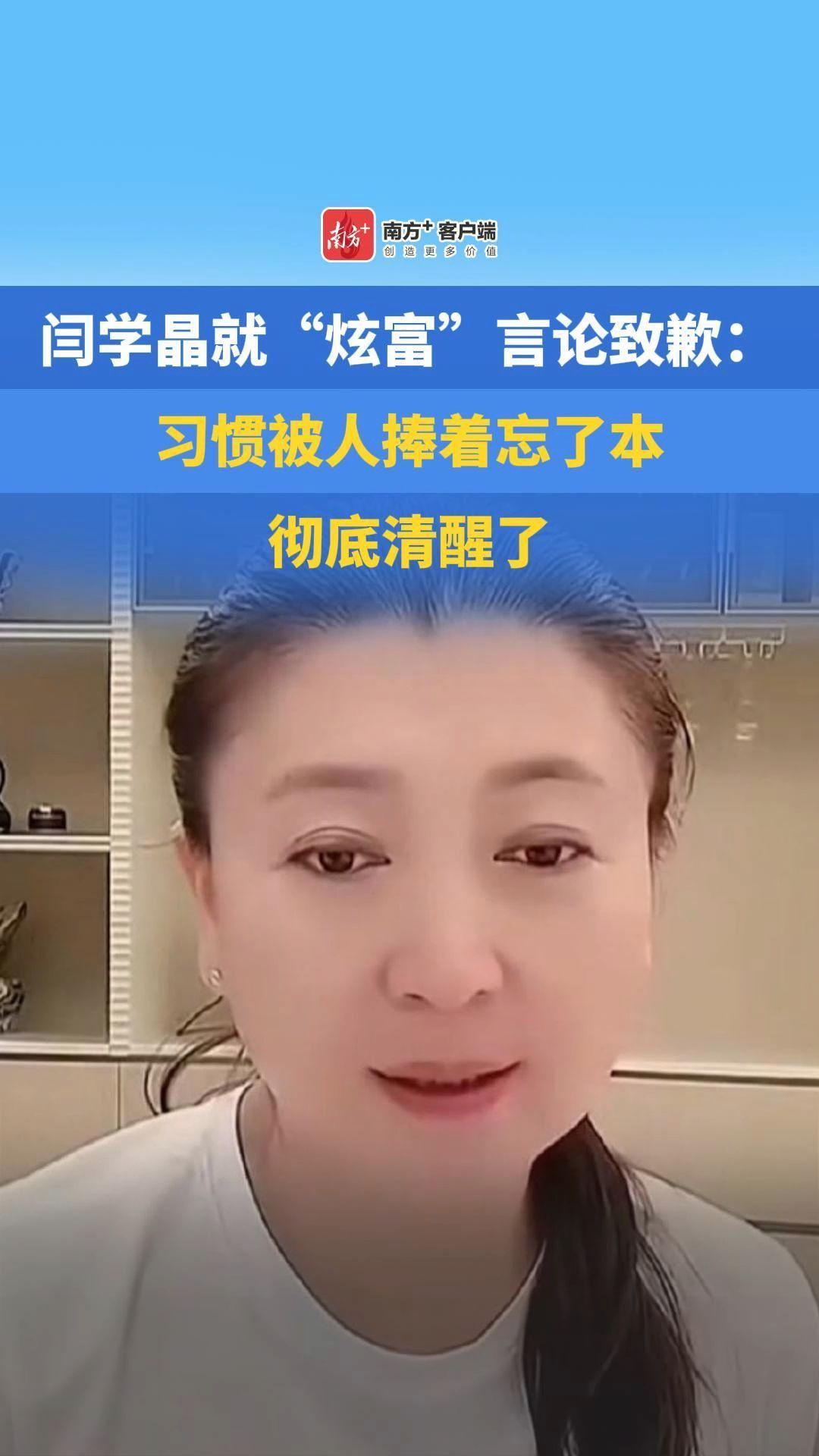 闫学晶就“炫富”言论致歉:习惯被人捧着忘了本,彻底清醒了