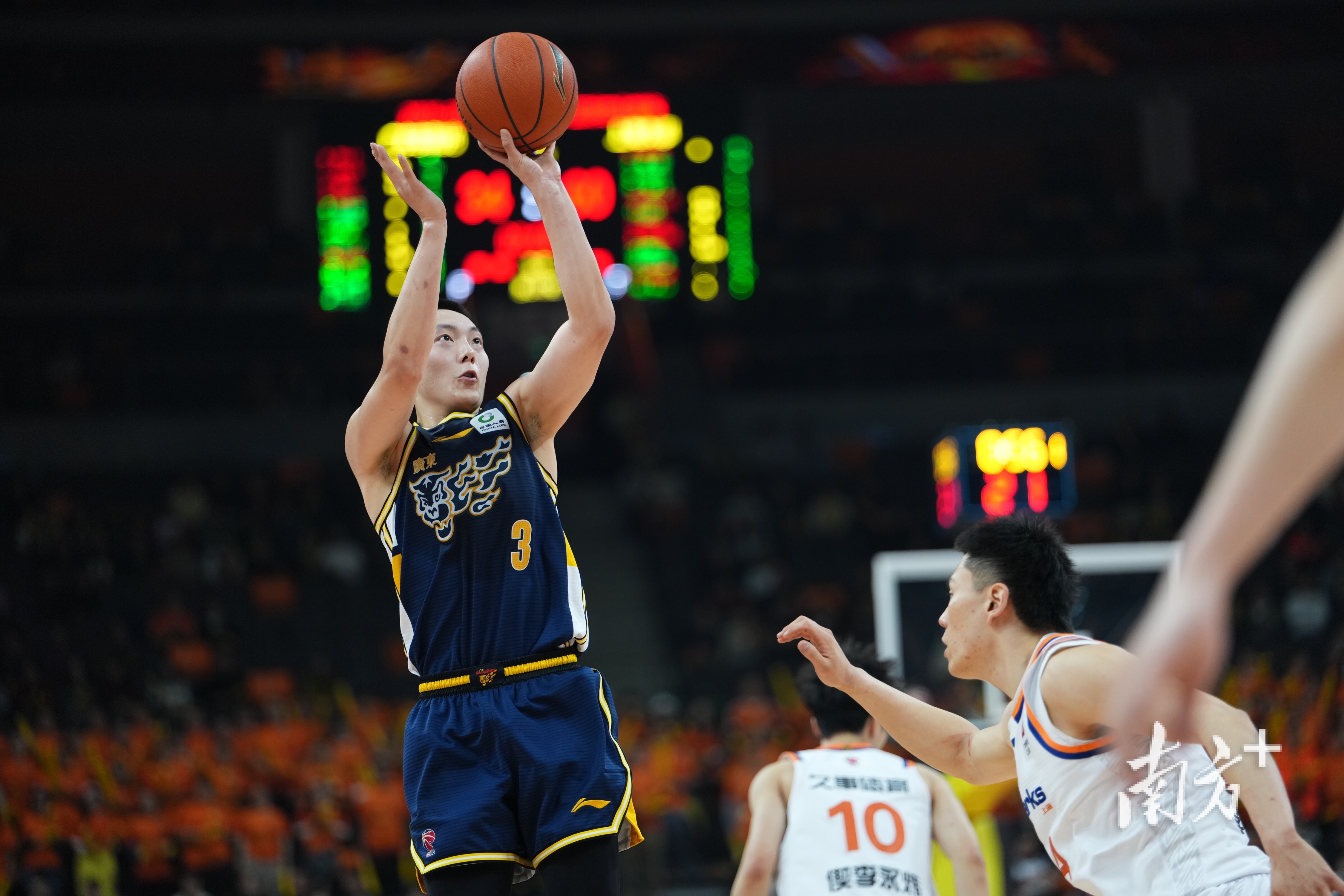 下半场易边再战,上海男篮丝毫没有放缓节奏,张镇麟延续火热手感,三分与暴扣轮番上演,李弘权、刘铮等本土球员也接连发力,分差迅速突破30分大关。广东队虽尝试调整阵容发起反扑,但进攻端依旧低效,三分球命中率低至离谱,防守端篮板保护不力、退防缓慢,被对手多次打出快攻反击。第三节战罢,广东队53-89落后36分,比赛正式进入垃圾时间。