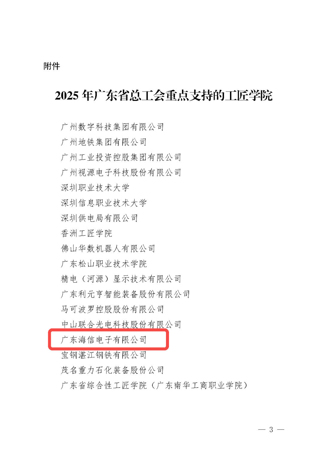 近日,广东省总工会发布了《关于认定2025年广东省总工会重点支持的工匠学院的通知》,广东海信电子有限公司成功入选2025年广东省总工会重点支持的工匠学院名单。作为江门地区本次评定中唯一入选的企业,同时也是蓬江区第二家获得省总工会重点支持的工匠学院。