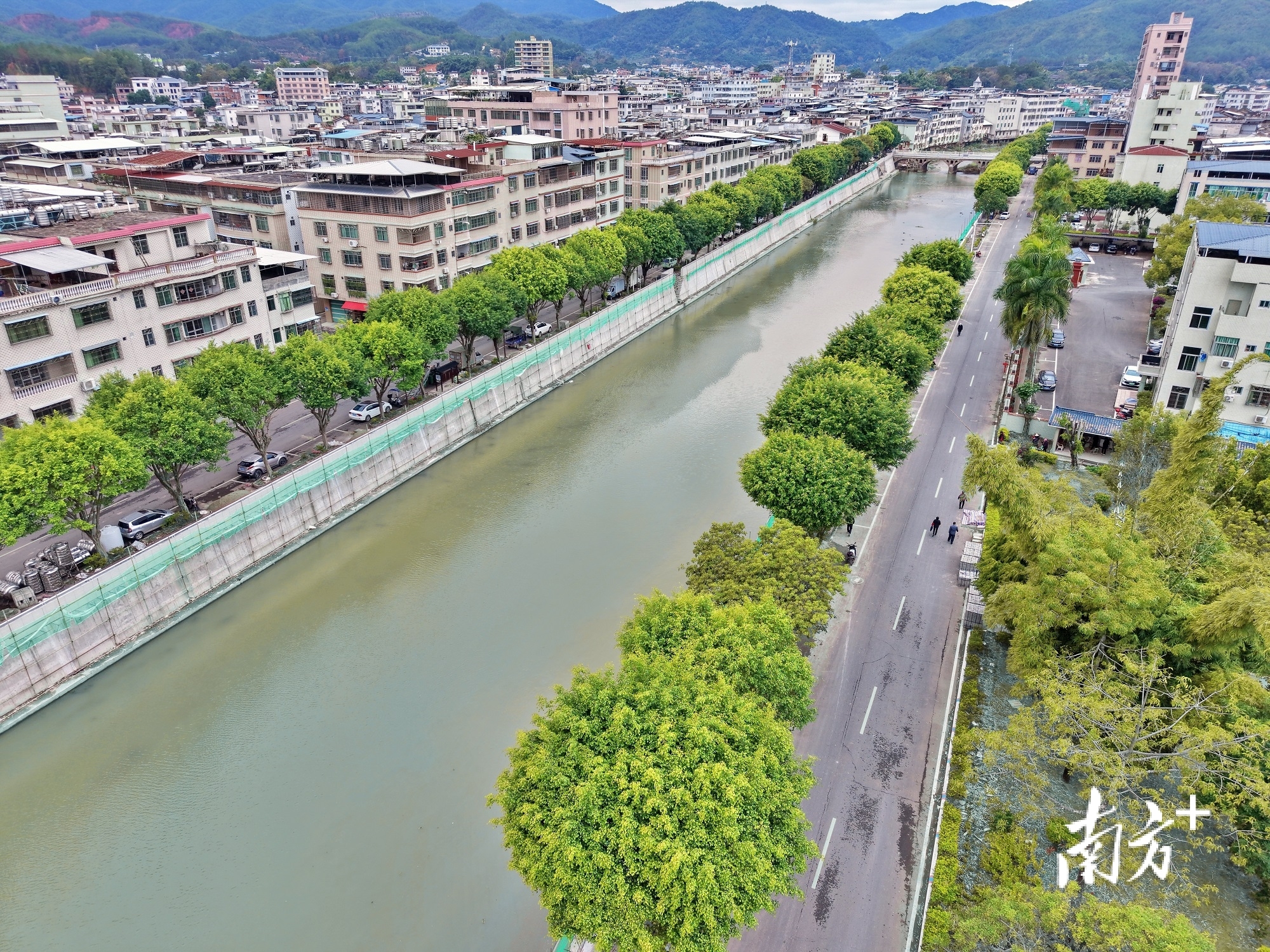 金叶市场前的河道旁,工人们正平整土地铺设跑道,未来1公里长的滨河步道将串联起更多风景;已建成的蒙吉公园里,居民悠闲漫步、闲话家常;美丽圩镇客厅内,展板生动述说着松源的古今之变,成为展示镇域形象的新窗口。