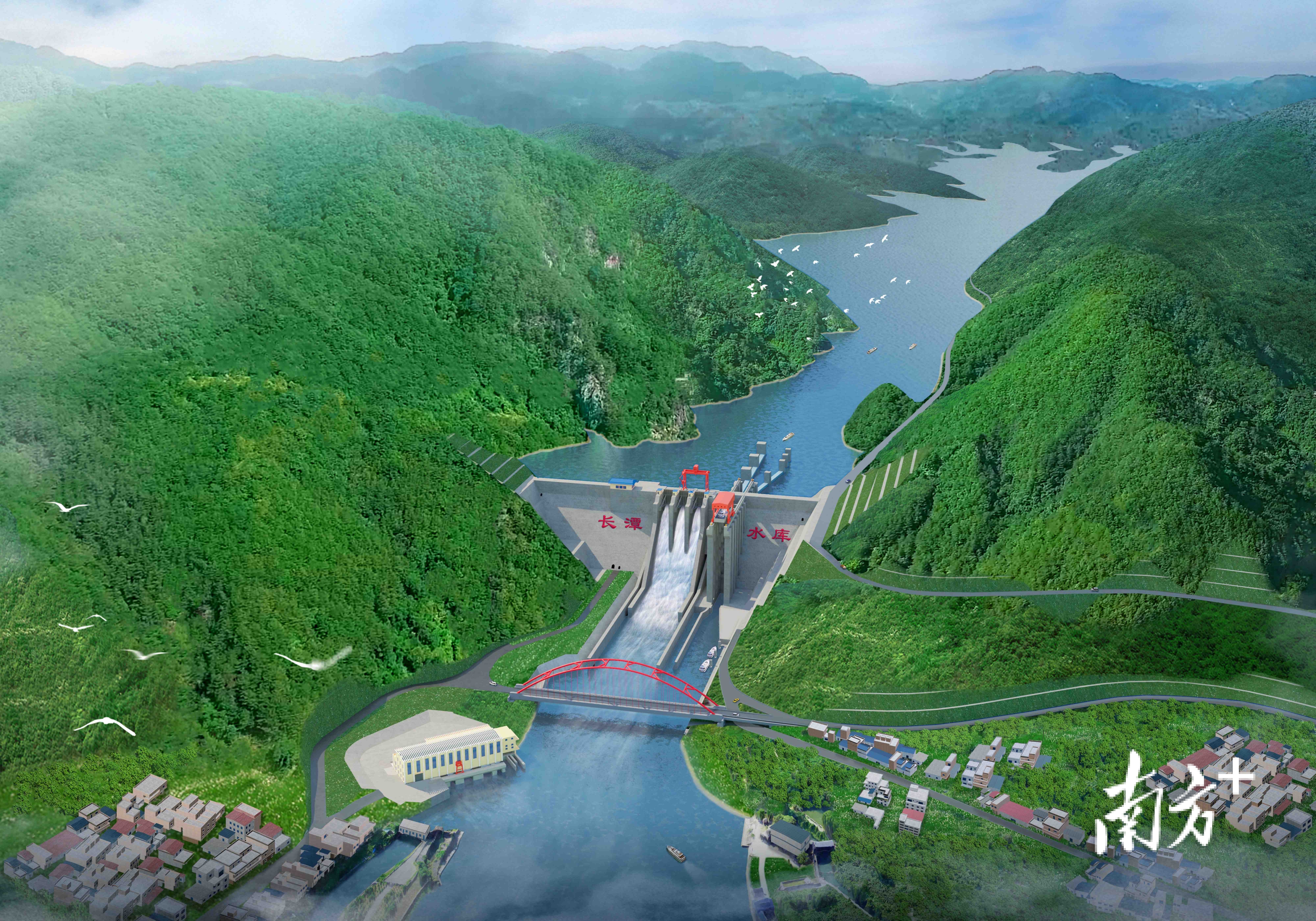 韩江流域一批防洪能力提升工程已开工建设,图为梅州市长潭水库扩建工程效果图。