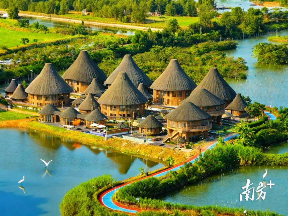 位于汕尾市大液河碧道旁的白鹭集度假村,野奢风格的建筑与湿地浑然一体。 资料图片