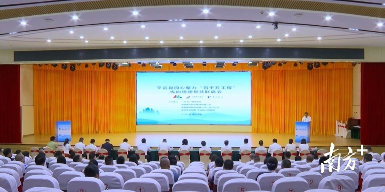 会议首先观看了纵向帮扶工作视频,并听取“百千万工程”纵向帮扶工作情况汇报。随后,现场举行项目交付仪式,省广电局、南航集团、广东电信三家组团单位共交付了73个项目,并答谢支持“百千万工程”的相关单位。最后,省广电局、南航集团、广东电信以及市、县相关领导共同为接下来落地的34个项目举行启动仪式,并现场达成3项合作签约。