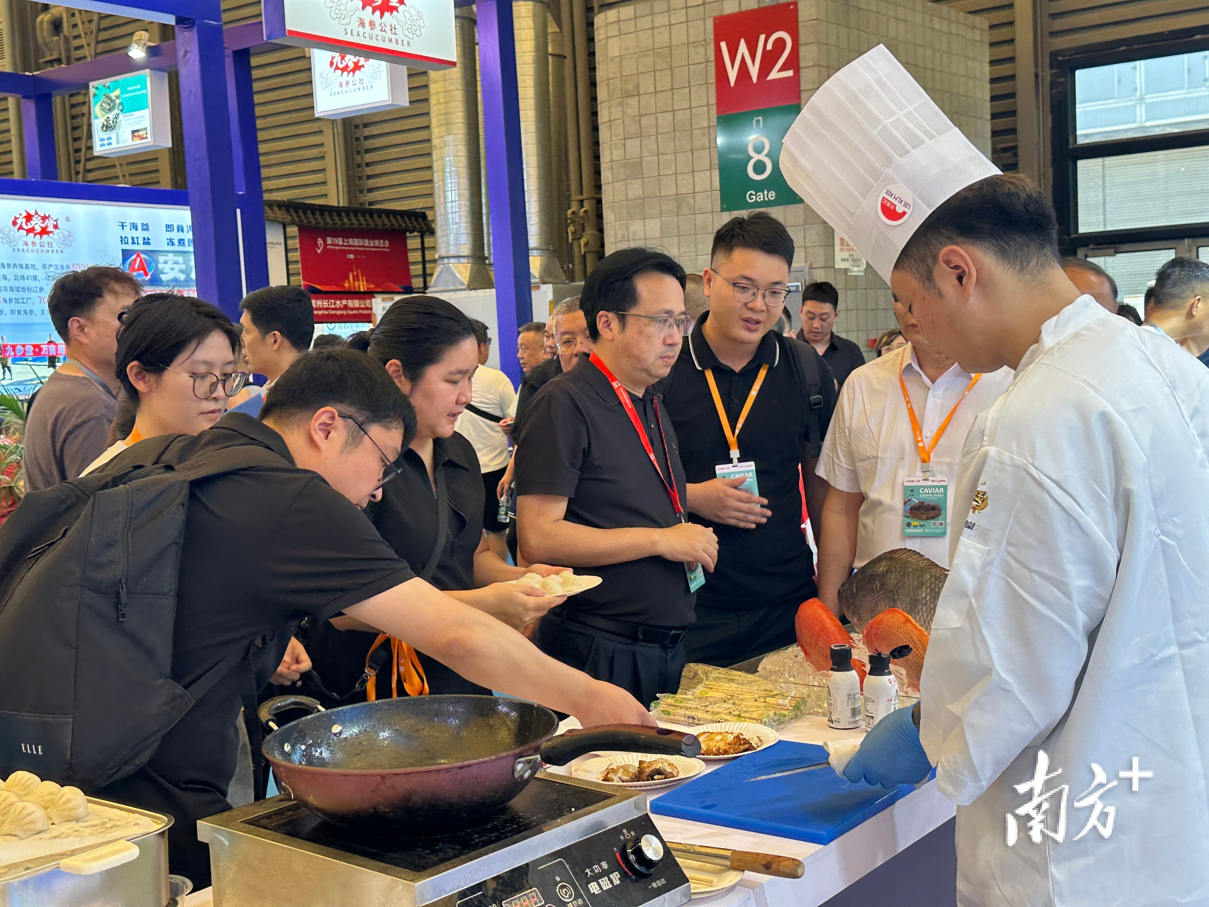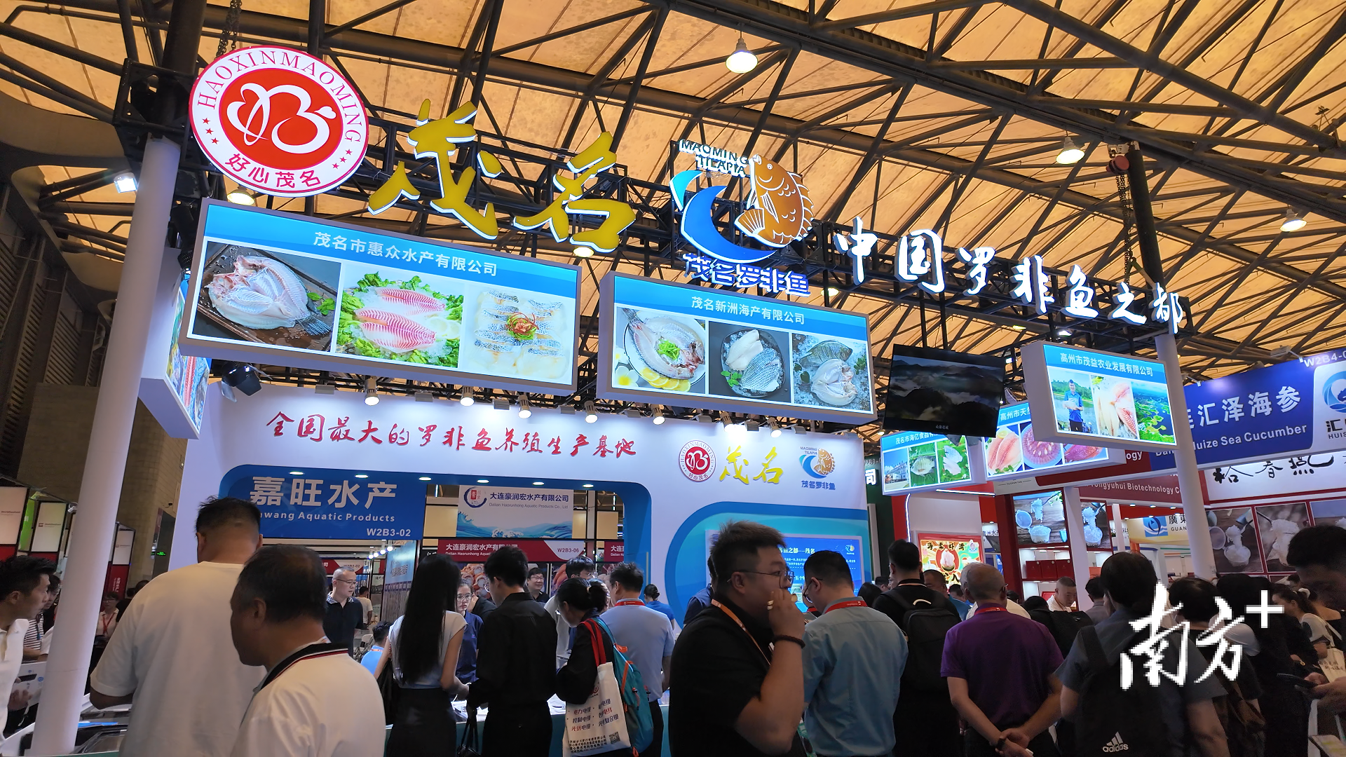 8⽉27⽇⾄29⽇,第19届上海国际渔业博览会在新国际博览中⼼举办。期间,茂名特邀名厨现场烹饪罗⾮⻥菜品,吸引了众多采购商、市⺠排队品鉴。