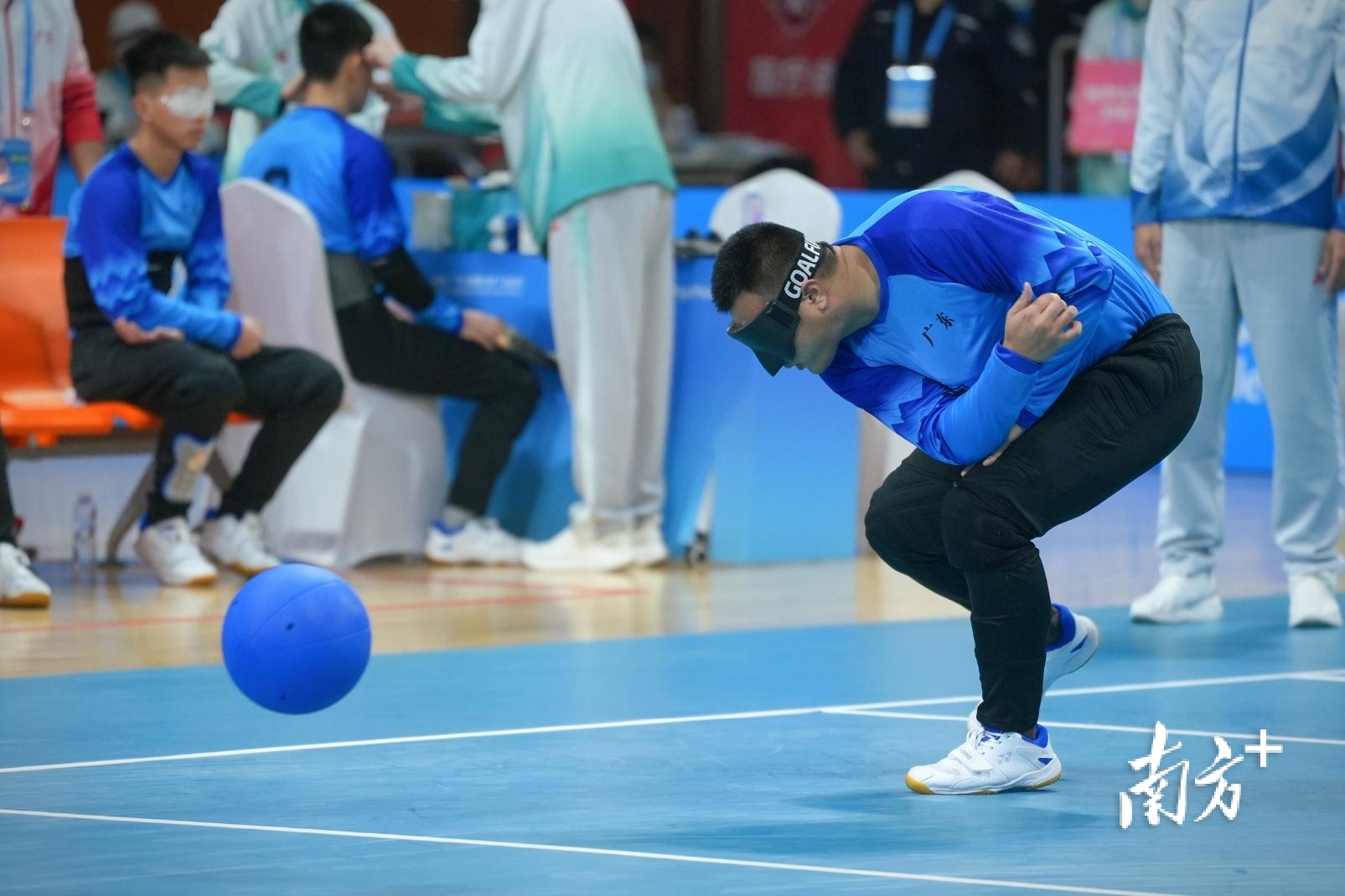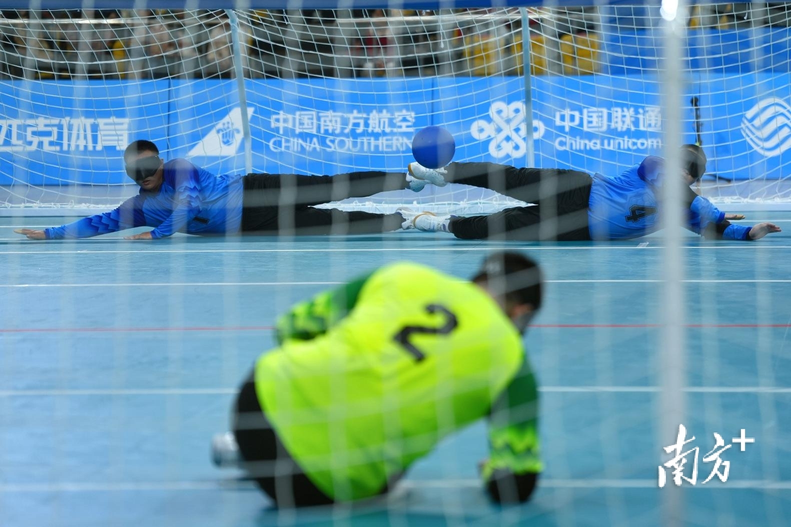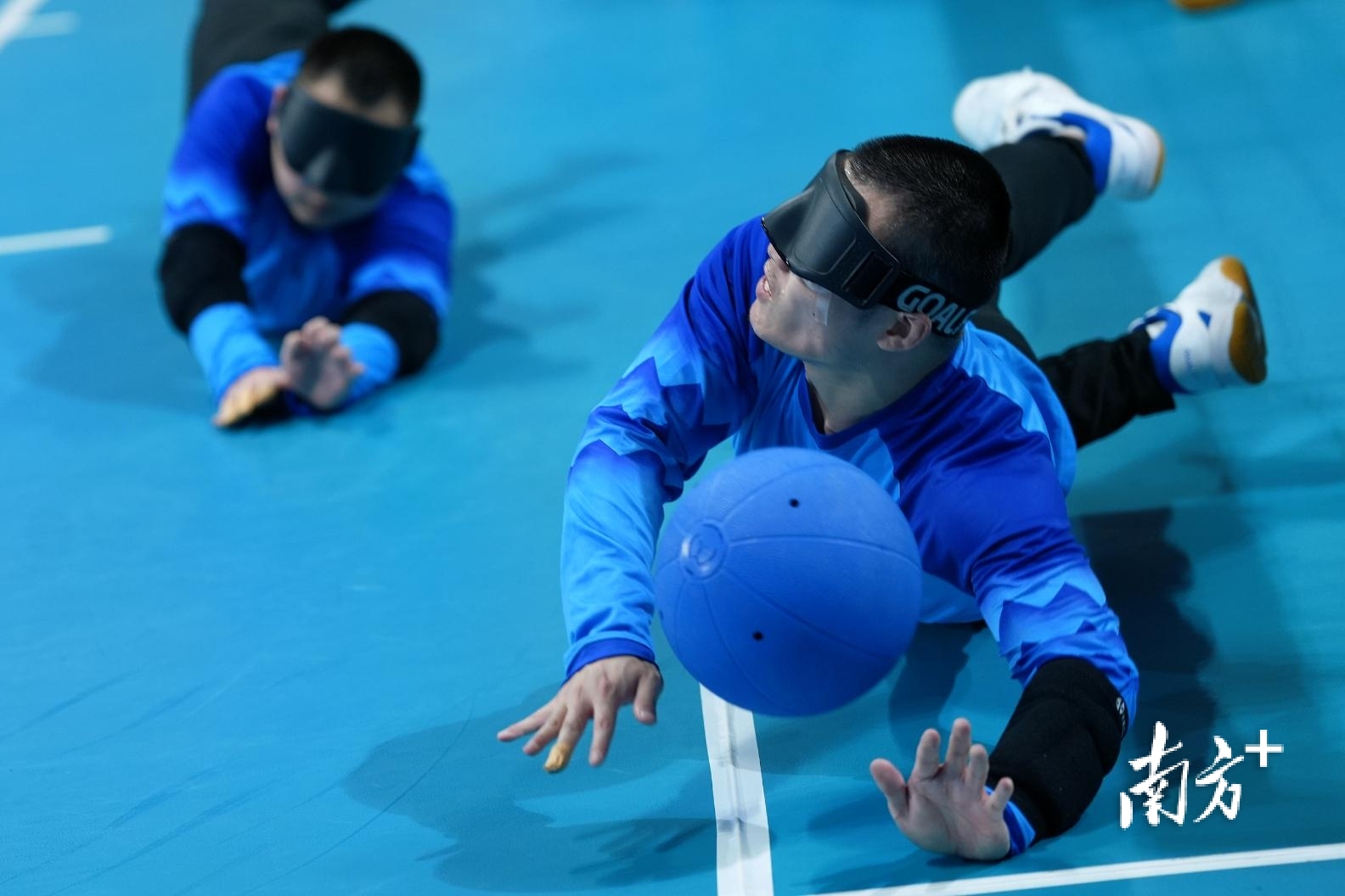 盲人门球比赛中,运动员要全部佩戴眼罩,一方要将带有响铃的球奋力掷入对方球门,另一方依靠听觉判断来球方位,通过扑、滚、挡等动作,阻止球进入己方球门。该项运动考验运动员的力量、速度和技巧,对他们的听力、方位感、身体协调性以及团队协作能力提出较高要求。