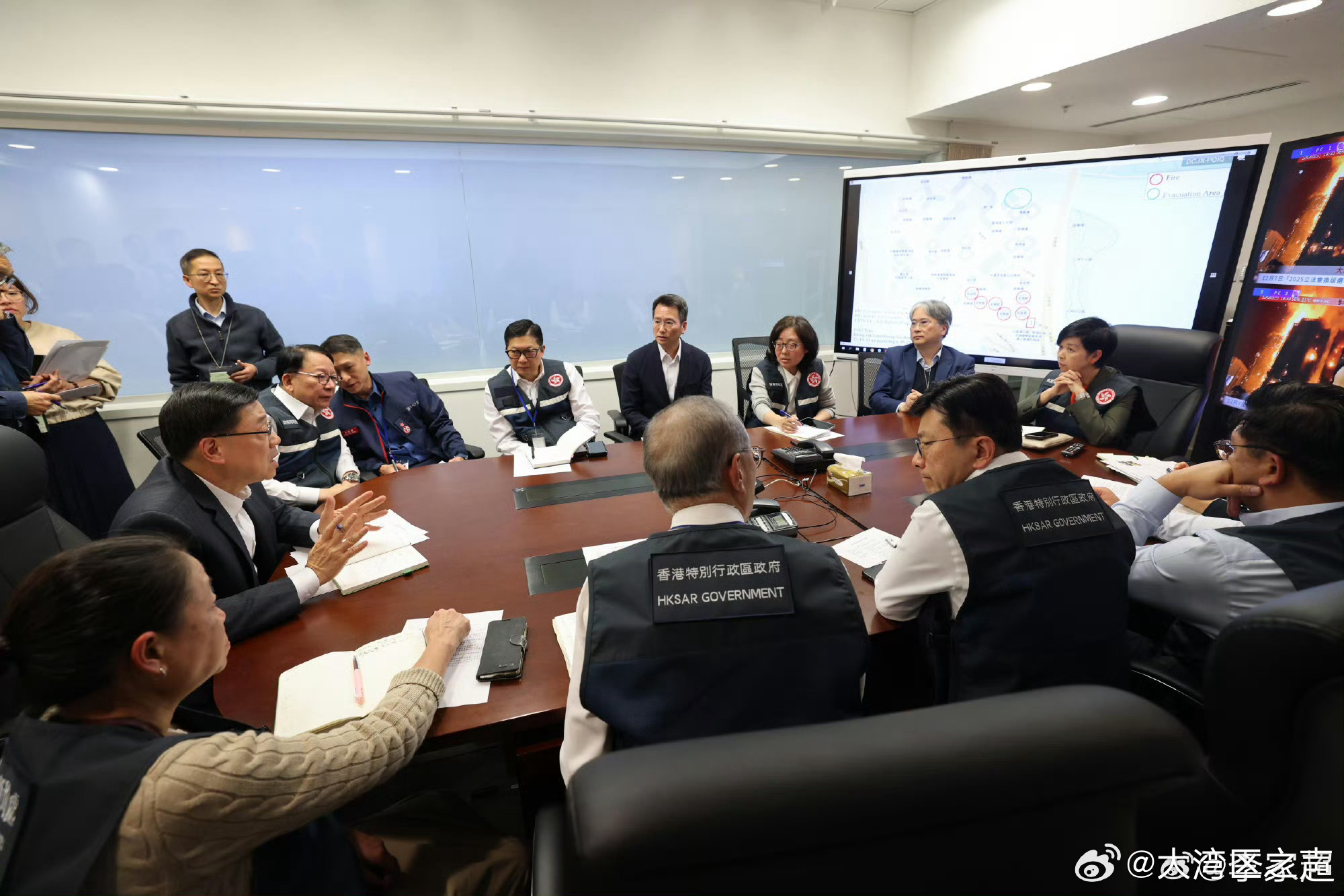 李家超已即时启动紧急事故监察及支援中心,听取保安局和消防处的汇报,并指示部门全力做好灭火救援救治工作。各政府部门全力协助受火警影响的居民,将市民安全及福祉放在首位。民政事务总署、民政事务处及社会福利署已在现场设立援助站,并安排受影响人士入住临时庇护中心,以及为死伤者家属提供援助及情绪支援。医管局亦已启动应急机制,全力救治伤者。