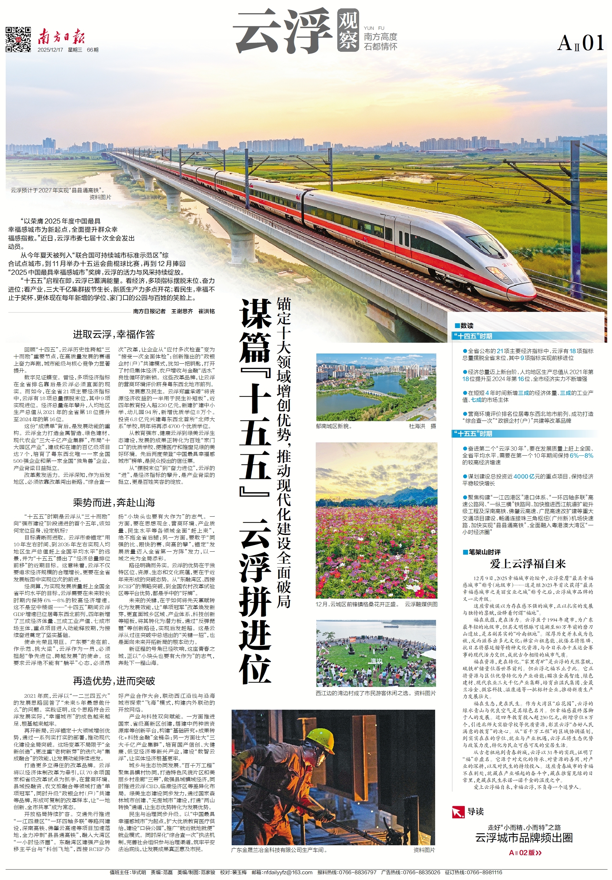 “十五五”启程在即,云浮已蓄满能量。看经济,多项指标摆脱末位、奋力进位;看产业,三大千亿集群拔节生长,新质生产力多点开花;看民生,幸福不止于奖杯,更体现在每年新增的学位、家门口的公园与百姓的笑脸上。
