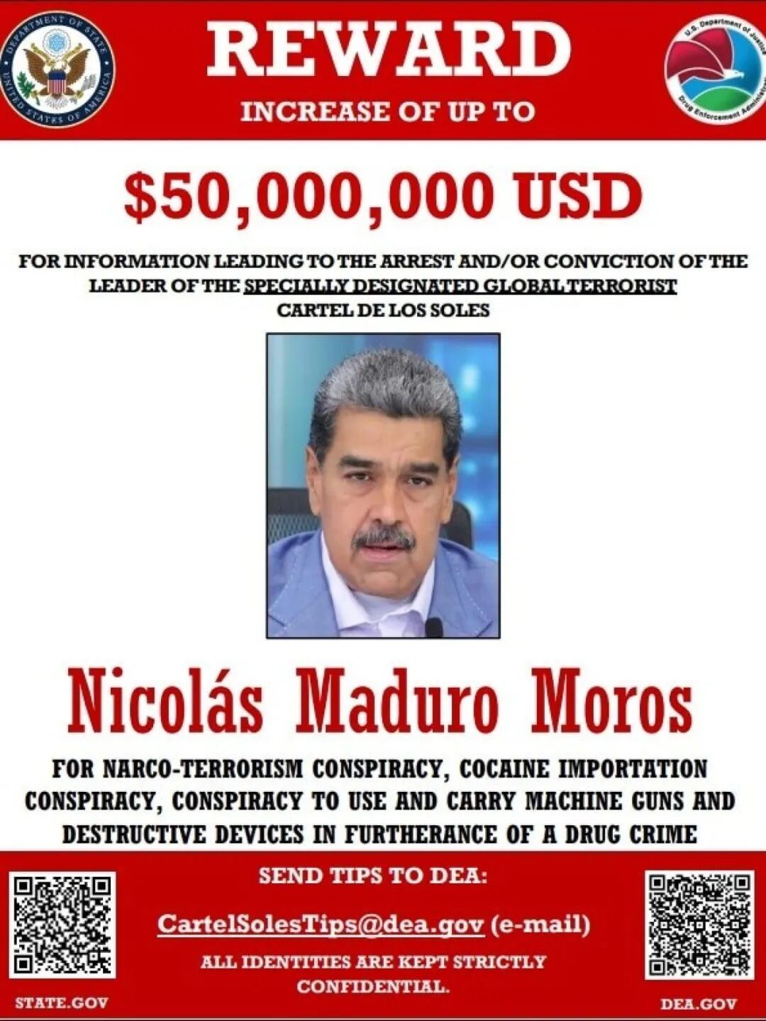 ▲美国国务院对马杜罗的悬赏通告 图/US State Department