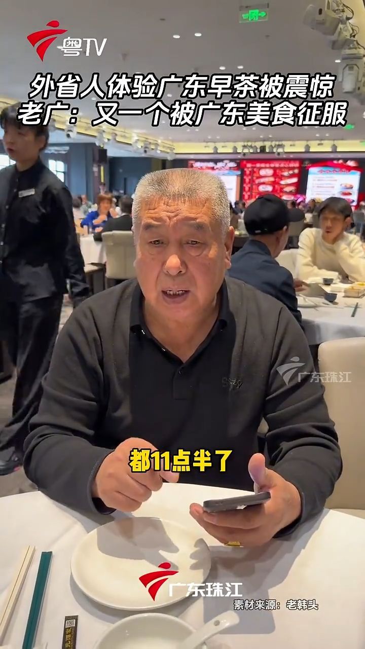 面对上午11点半还叫“早茶”、一坐就是两小时的广东人,他一脸困惑:“这不都中午了?”“他们咋吃了两小时不走啊?”