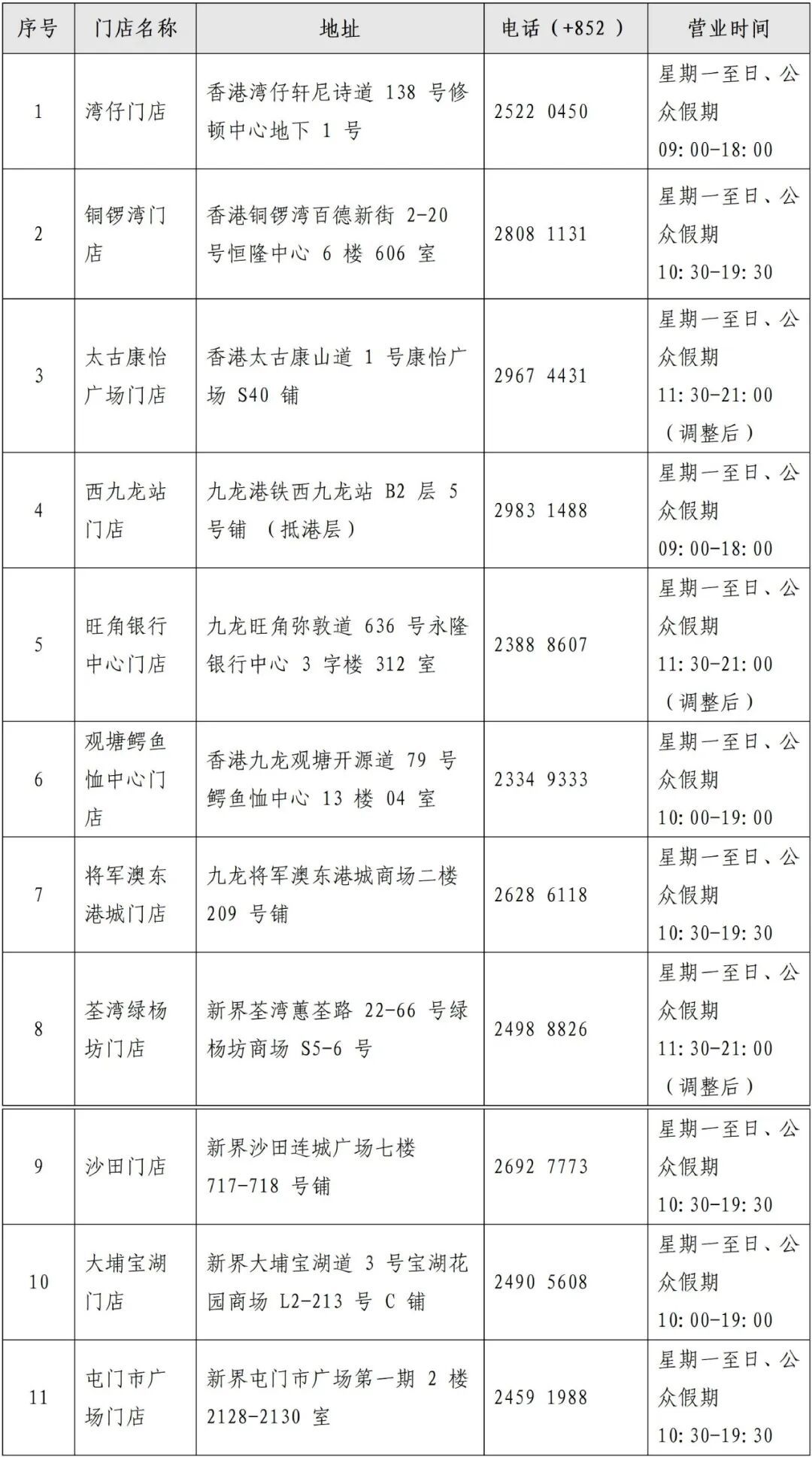 香港中国旅行社11家网点信息(仅销售香港赛区门票)