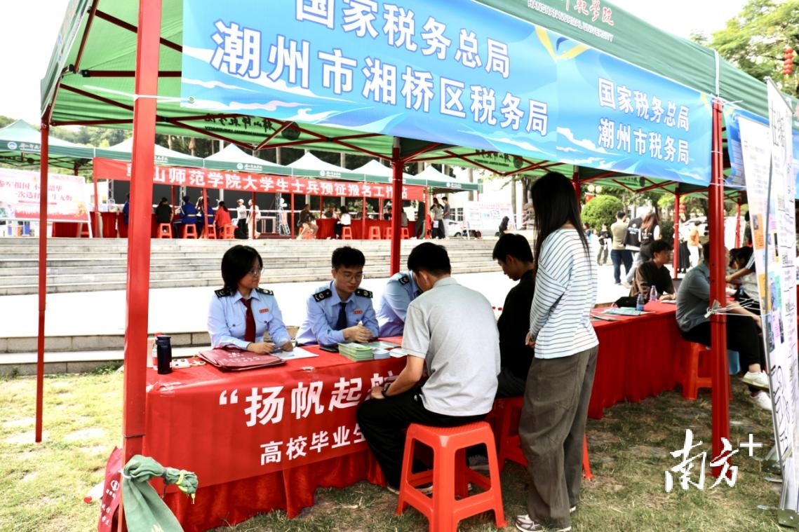 近日,“智汇潮州 戎耀新程”潮州市高学历退役军人及随军家属高质量就业专场招聘会在韩山师范学院举办。活动现场,国家税务总局潮州市税务局牵头联合湘桥区税务局设置税务咨询摊,为前来求职的高校学生、退役军人及随军家属提供就业创业税费政策解读,帮助重点群体算清“优惠账”,增强创业信心。
