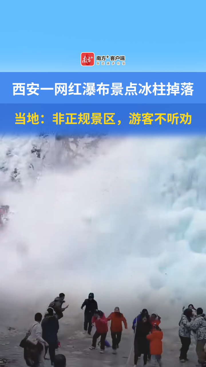 陕西西安一网红瀑布景点冰柱掉落,当地:非正规景区,游客不听劝