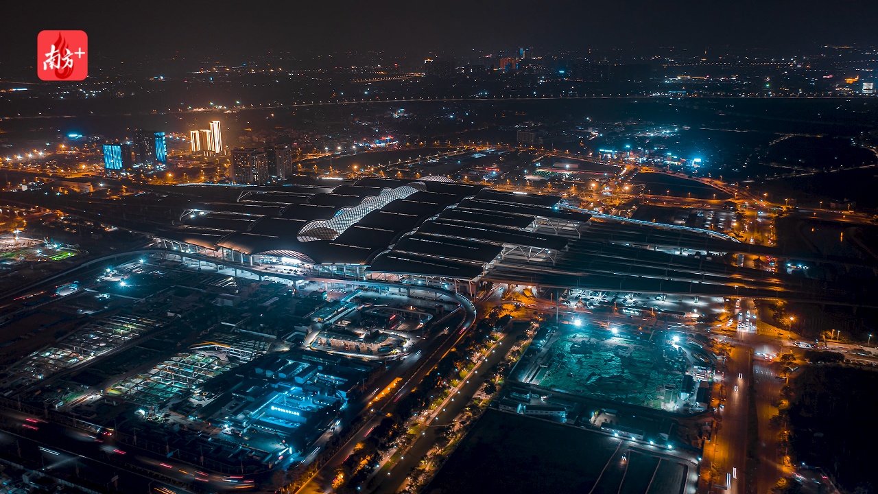 凌晨刚过,列车缓缓驶出。夜色中,它仿如“钢铁巨龙”,穿梭在广东大地,流光溢彩。