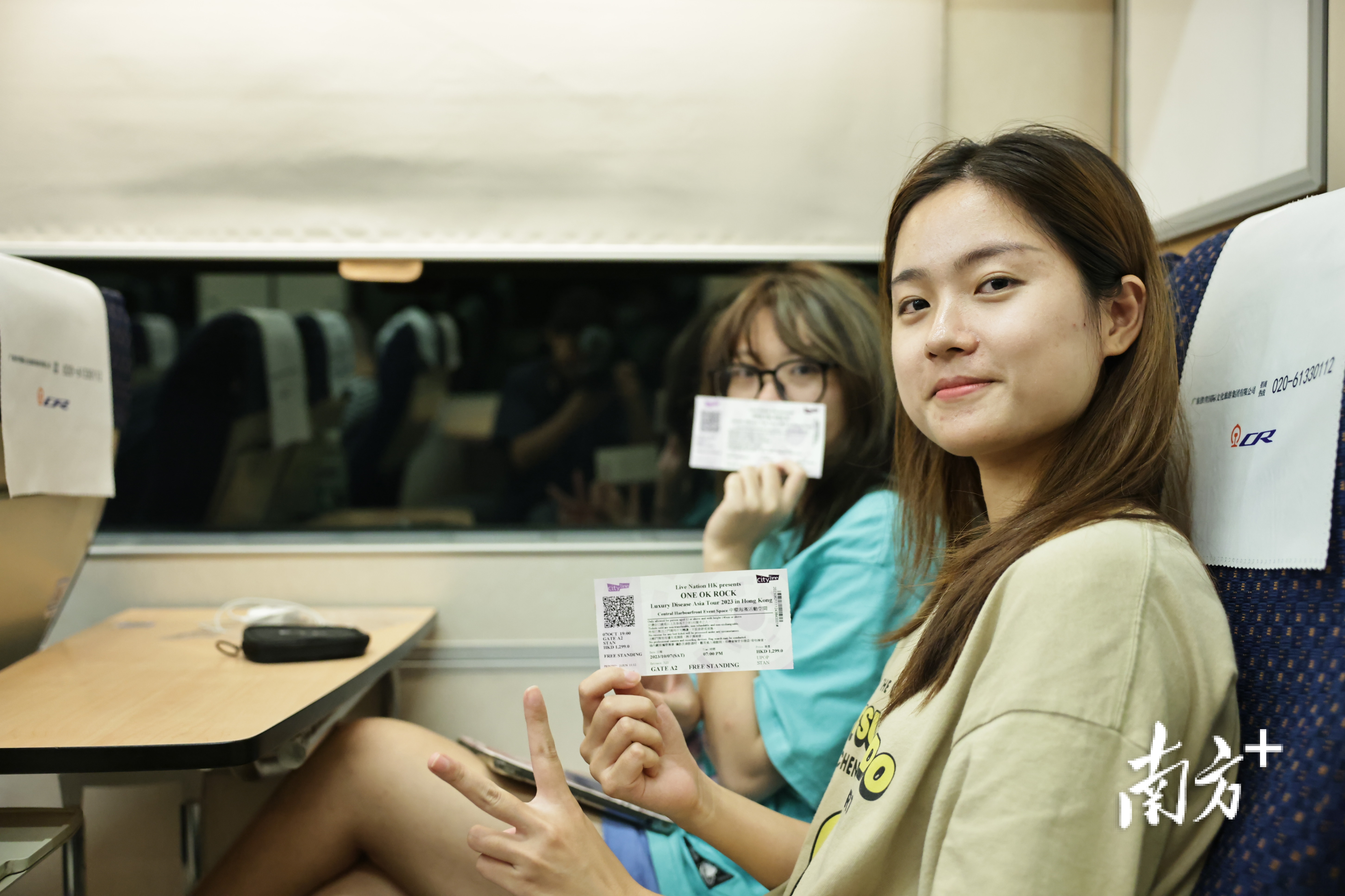 在茂名站上车的女孩苏祺琪和许洋洋难掩兴奋,到广州后她们又将飞奔到香港,心心念念的演唱会近在眼前。