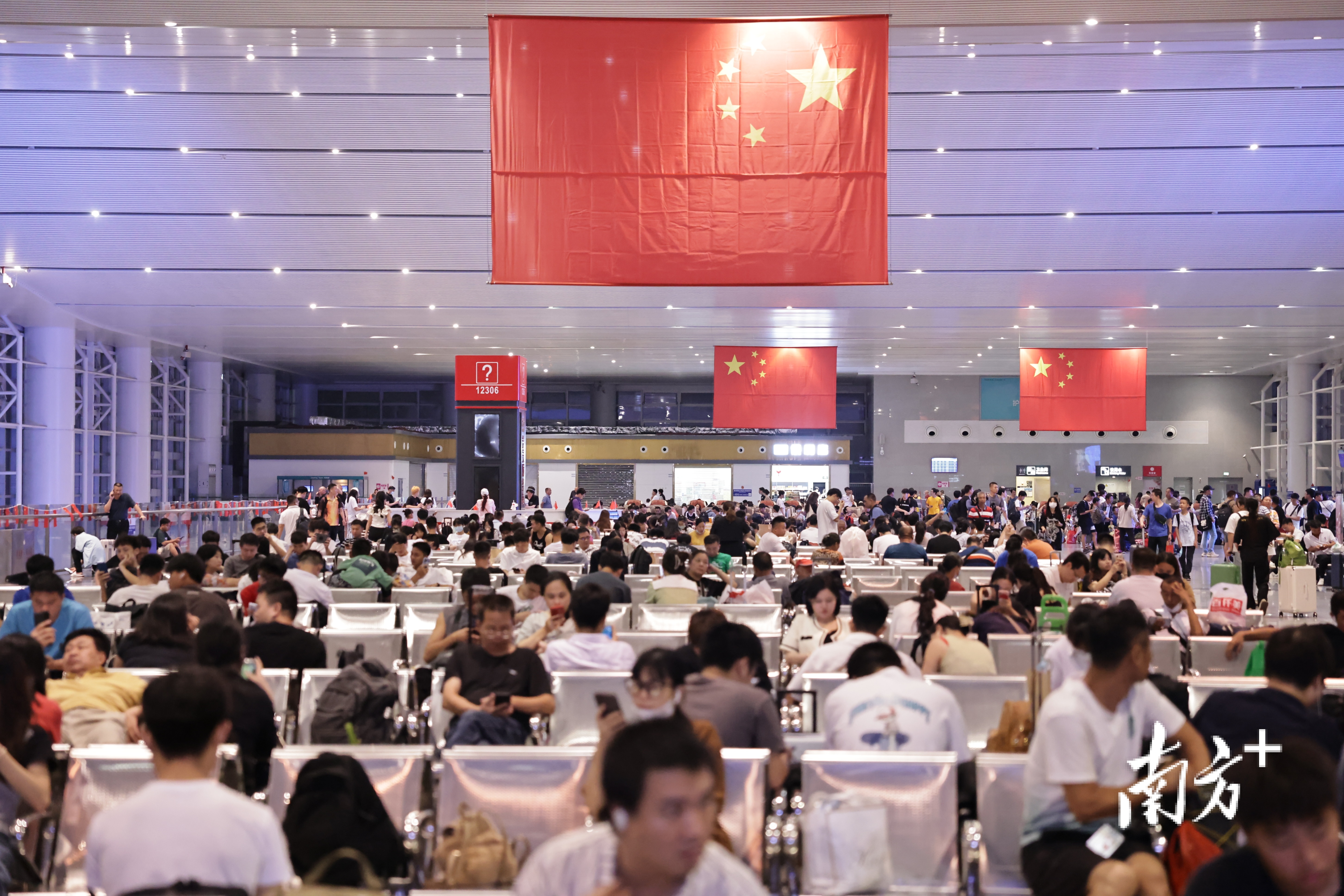 今年中秋国庆黄金周,民众的出行热潮带来了铁路客流高峰,为满足乘客出行需求,广东多地加开通宵的“夜铁路”。 南方+ 吴明 拍摄