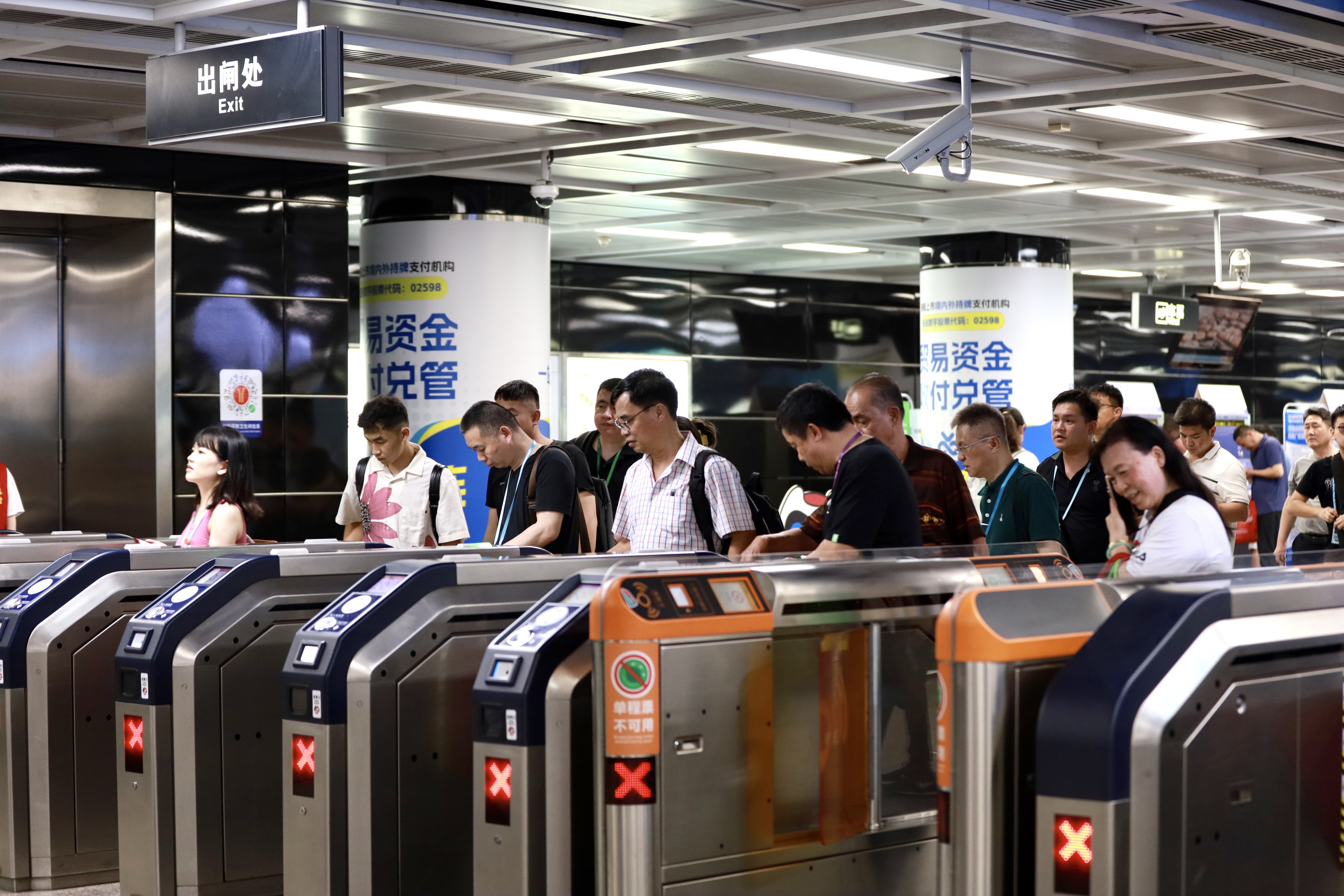 据悉,今年4月份春交会期间地铁在多元支付方面为外籍乘客推出的便民举措也将延续,一方面在琶洲、新港东、广州南站、石潭等相关展馆地铁站及枢纽站配备《入境⼈员搭乘地铁公交服务指引》小册子供乘客领取,另一方面在新港东站引入外币兑换机,在琶洲、新港东、广州火车站、广州东站、广州南站、石潭、机场南、机场北等8个车站引入10台外卡POS机,全方位做好外商友好服务。