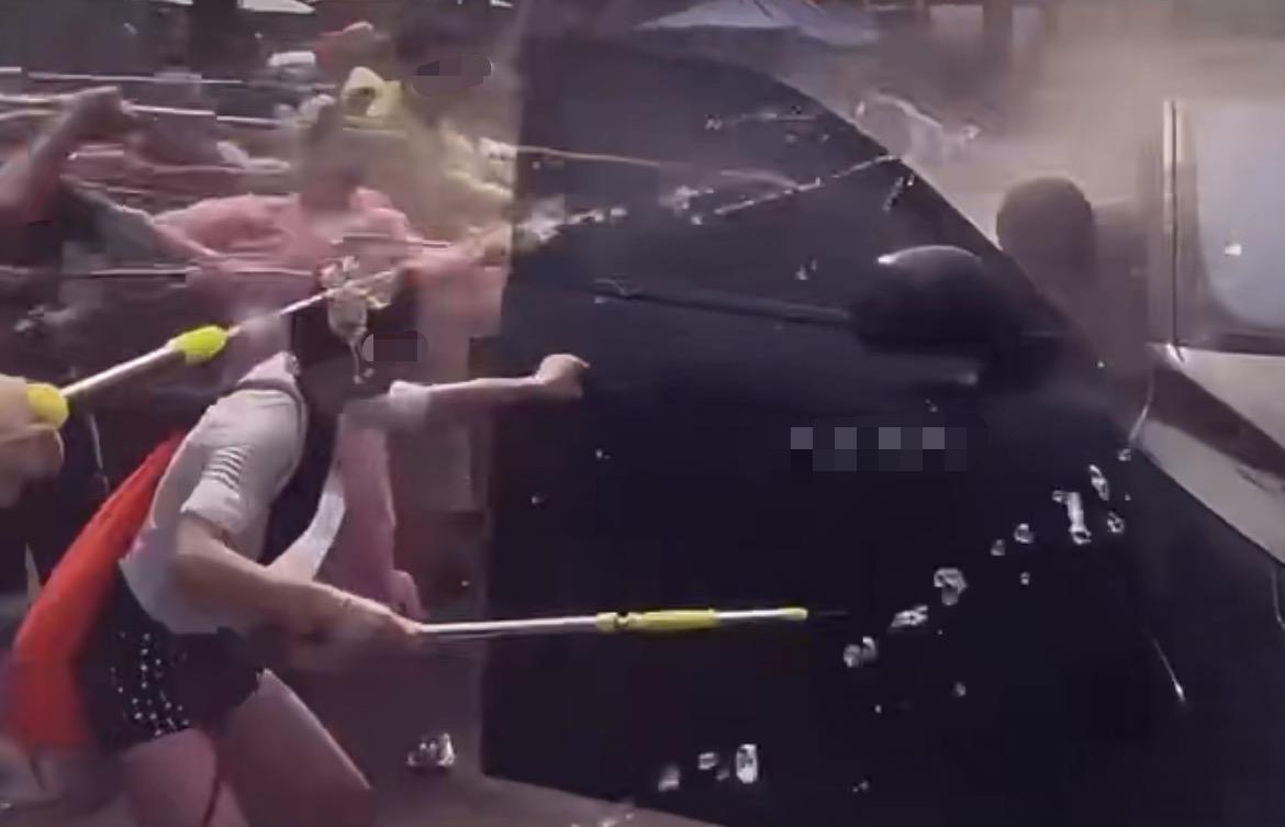 相关视频截图。此前曝光于网络的视频显示,一辆黑色理想汽车在云南泼水节现场被围堵,有人在车外喊“理想同学,打开车门”,随后副驾驶位的车门打开,众人往车内泼水。相关视频引发热议后,有网友指出“谁都能开门,那要锁干啥”,“‘理想同学’可以被车外人利用语音开门的吗”。