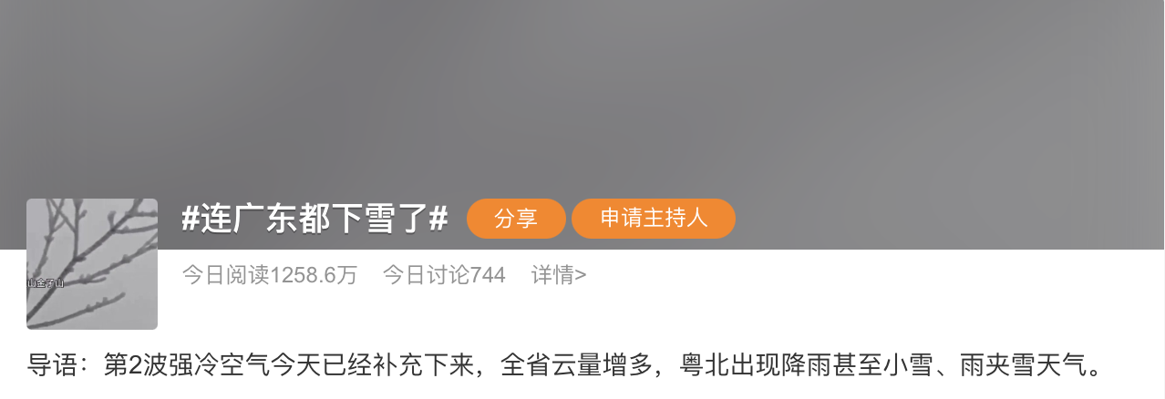 #连广东都下雪了# 话题冲上热搜,有网友表示:不是“尔滨”去不起,而是广东更有性价比。