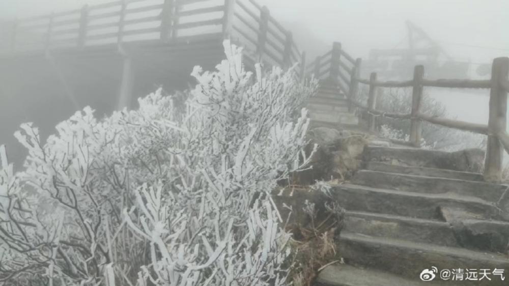 连山金子山再现雾凇场景 图/@清远天气