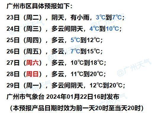 @广州天气预计,未来三天早晨最低气温都在5℃以下,早起出门的各位一定要注意做好保暖防寒工作。