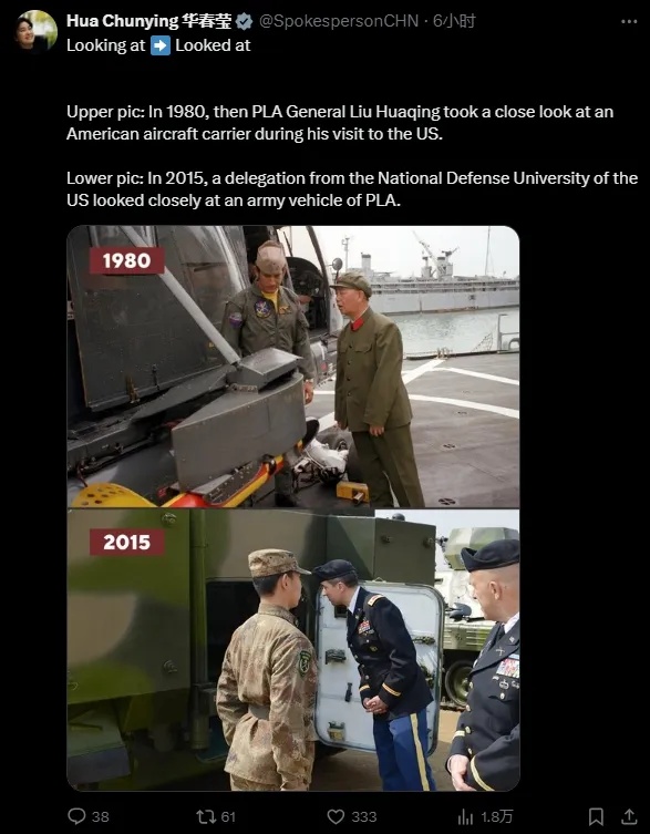 1980年,时任中国人民解放军副总参谋长刘华清将军访美,参观美国航母。