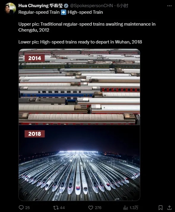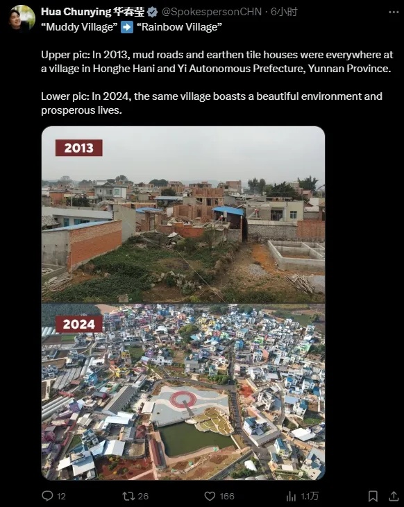 当天,中国外交部副部长、新闻司司长华春莹在社交媒体X平台发布18组对比图,生动展示了过去75年间,中华大地如何沧海桑田,换了人间!