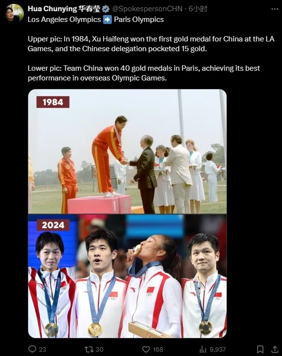 2024年,中国代表团在巴黎奥运会上取得境外参赛最好成绩,斩获40金。