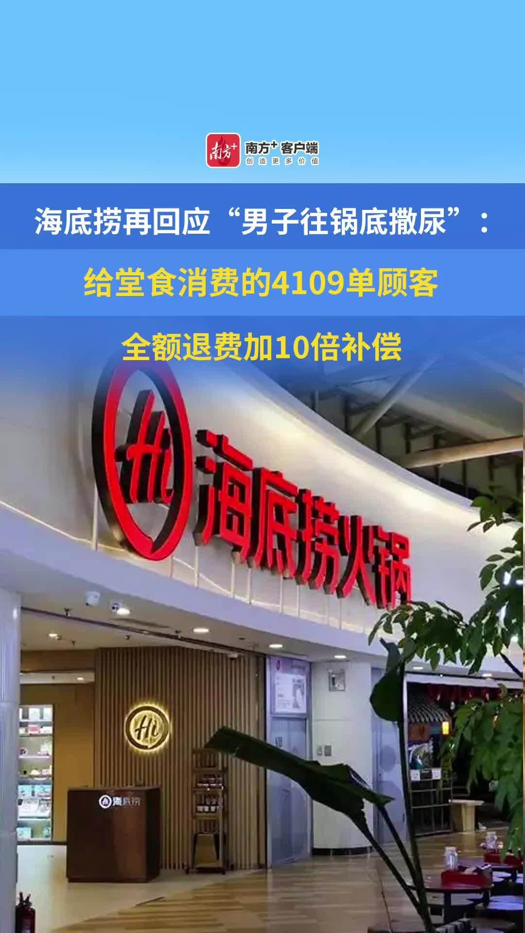 海底捞再回应“男子往锅底撒尿”: 给堂食消费的4109单顾客,全额退费加10倍补偿
