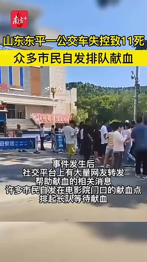 山东东平一公交车失控致11死,众多市民自发排队献血