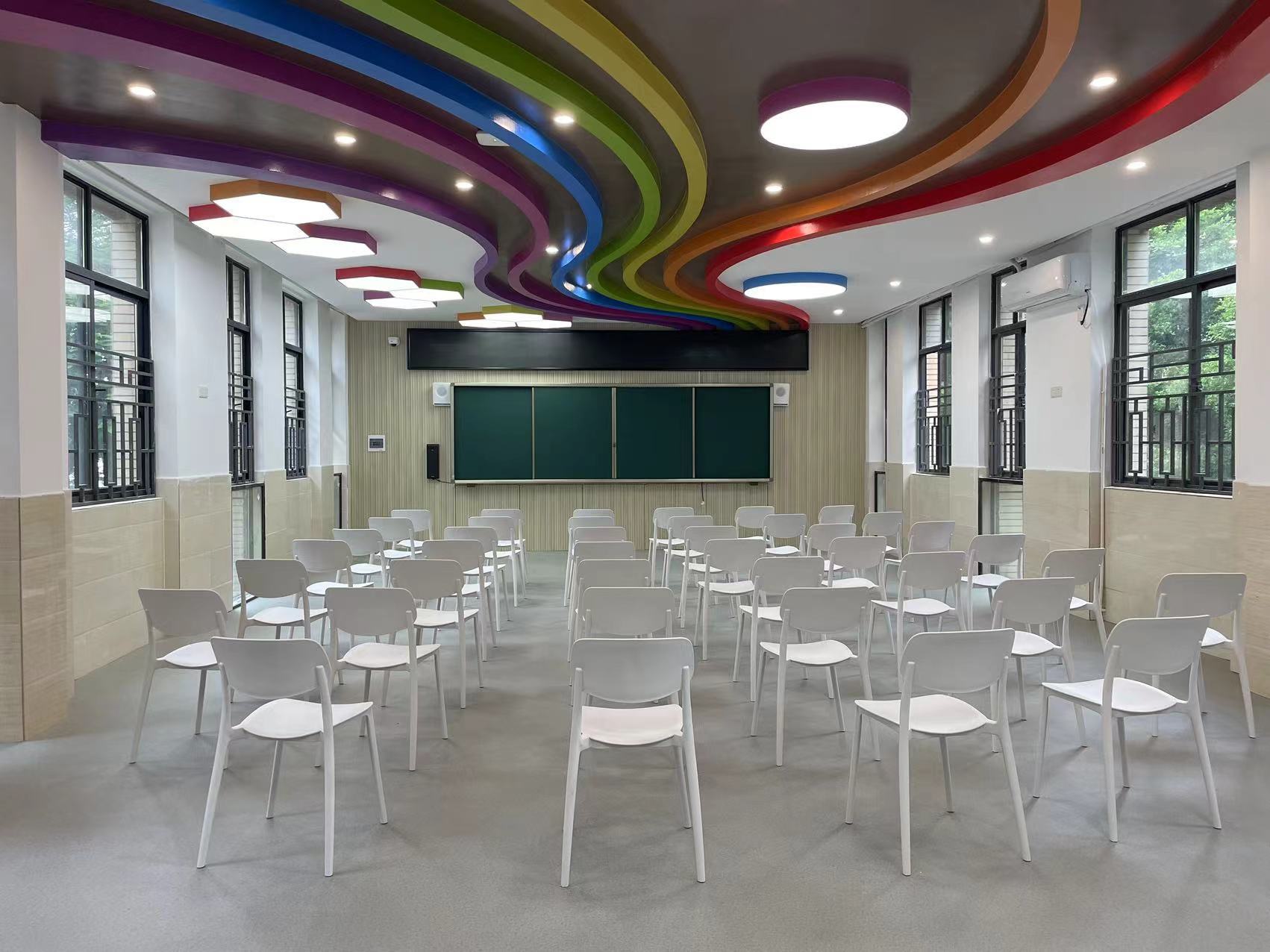 学校配备多个学创空间,涉及人工智能、科学室、STEM等,以及生物科学实验室、舞蹈室、美术室、科普E站等。