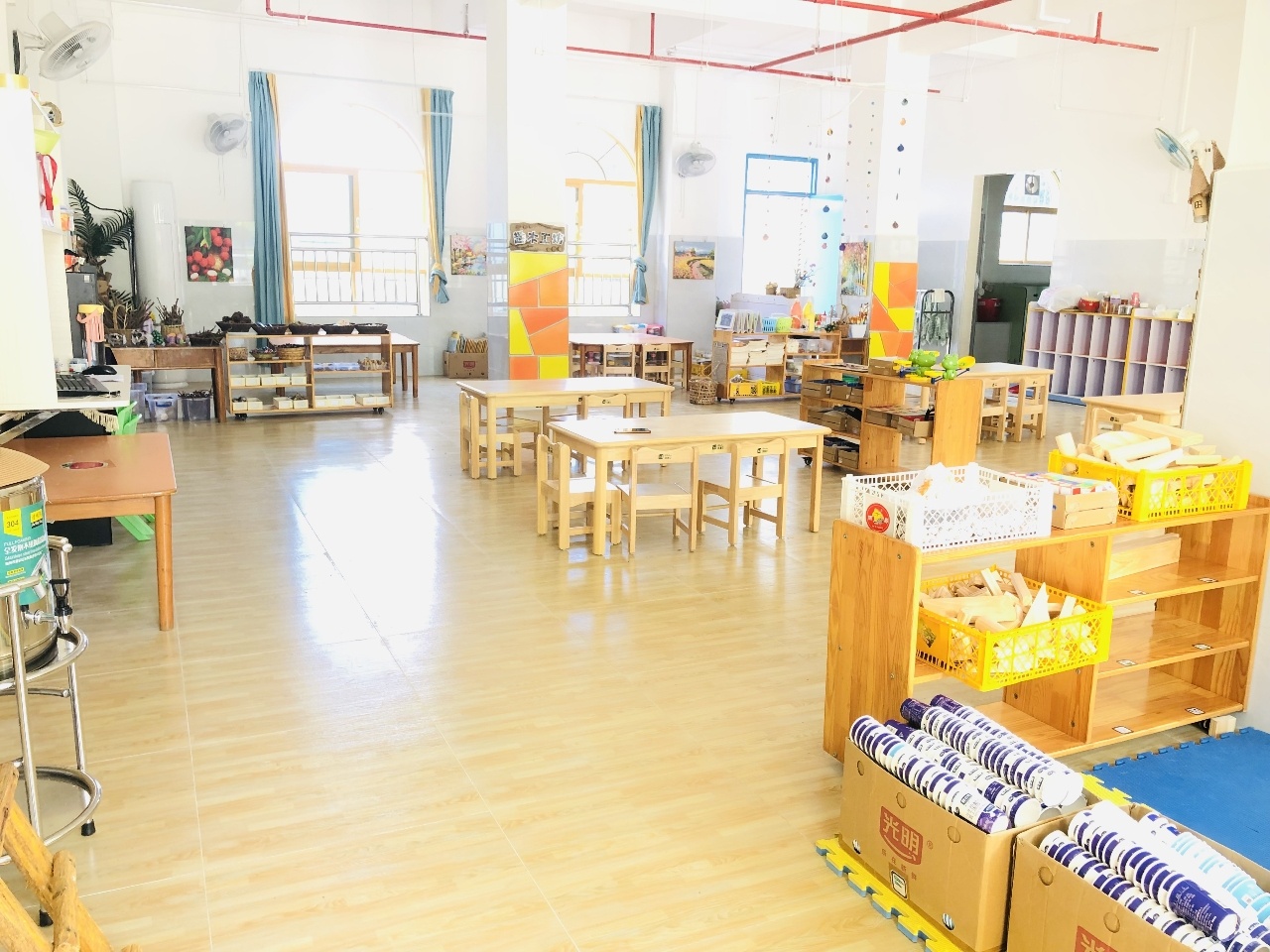 幼儿园场景围绕“自然生态”设计,室内外都以自然元素打造,户外以“前院种花、后院种果”花园式打造,现有果树种类13种、花卉种类10种;户外还设计了180平方米沙水一体化区域、泥巴地、草地、种植区等,随处可见花草树木和自然元素,让孩子们随时随地直接感知、实际操作、亲身体验到人与自然的和谐。