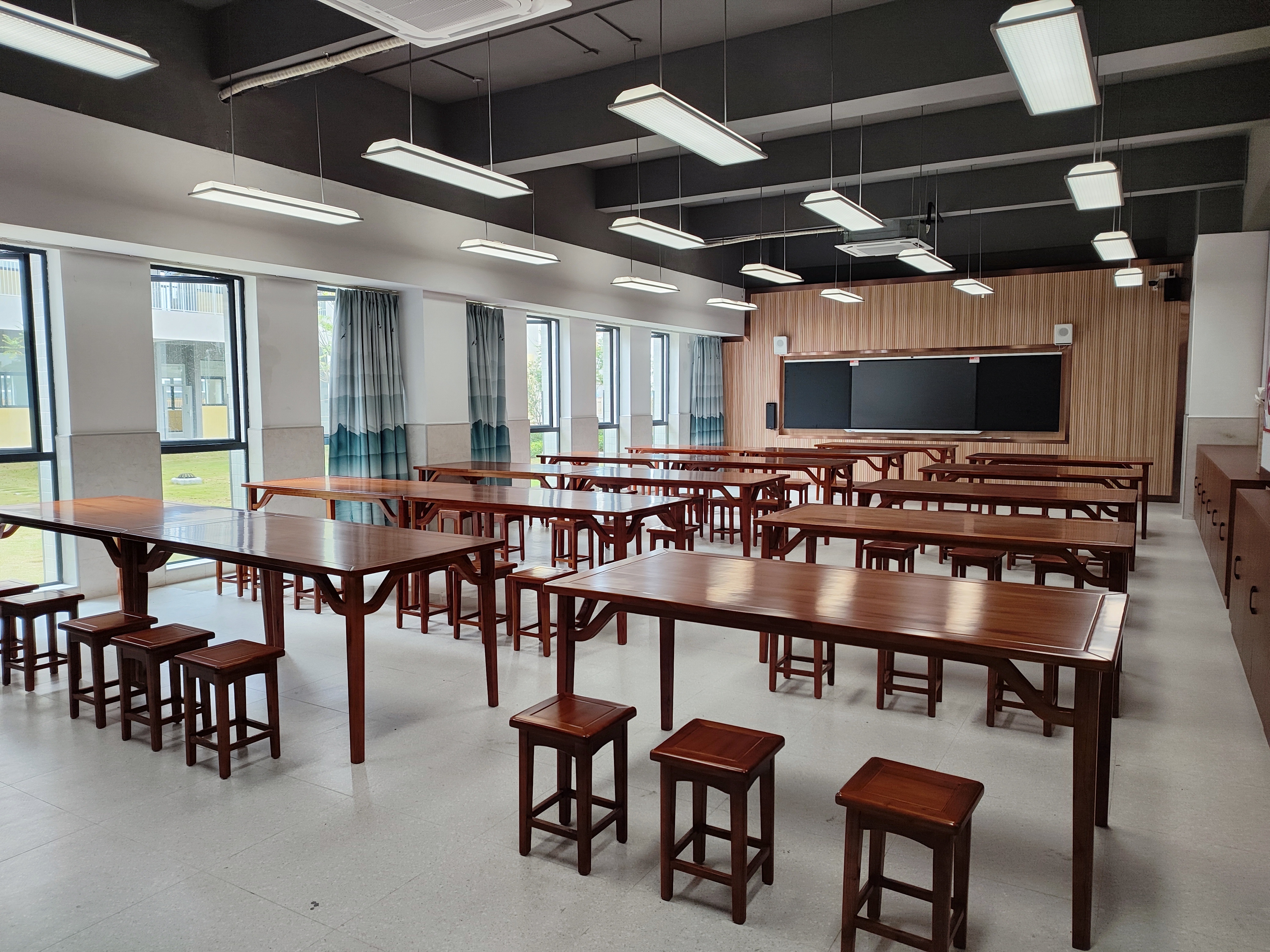 校内设有智慧图书室、音乐舞蹈室、科创室、劳艺室等多类课室。其中,科创室将用于信息技术课、科学课、stem课程等使用,劳艺室则用于开展美术课、书法课以及劳动课和综合实践课。