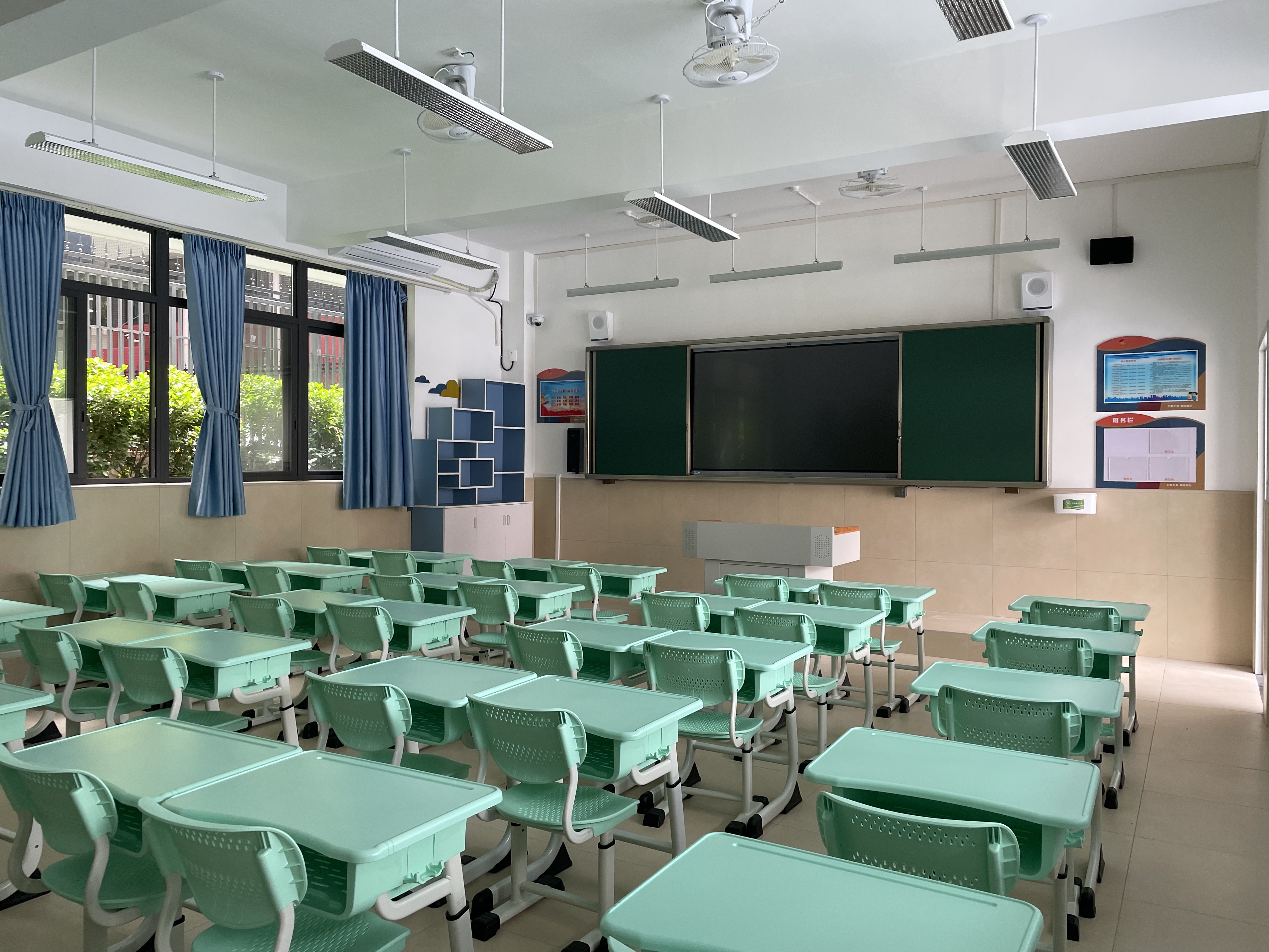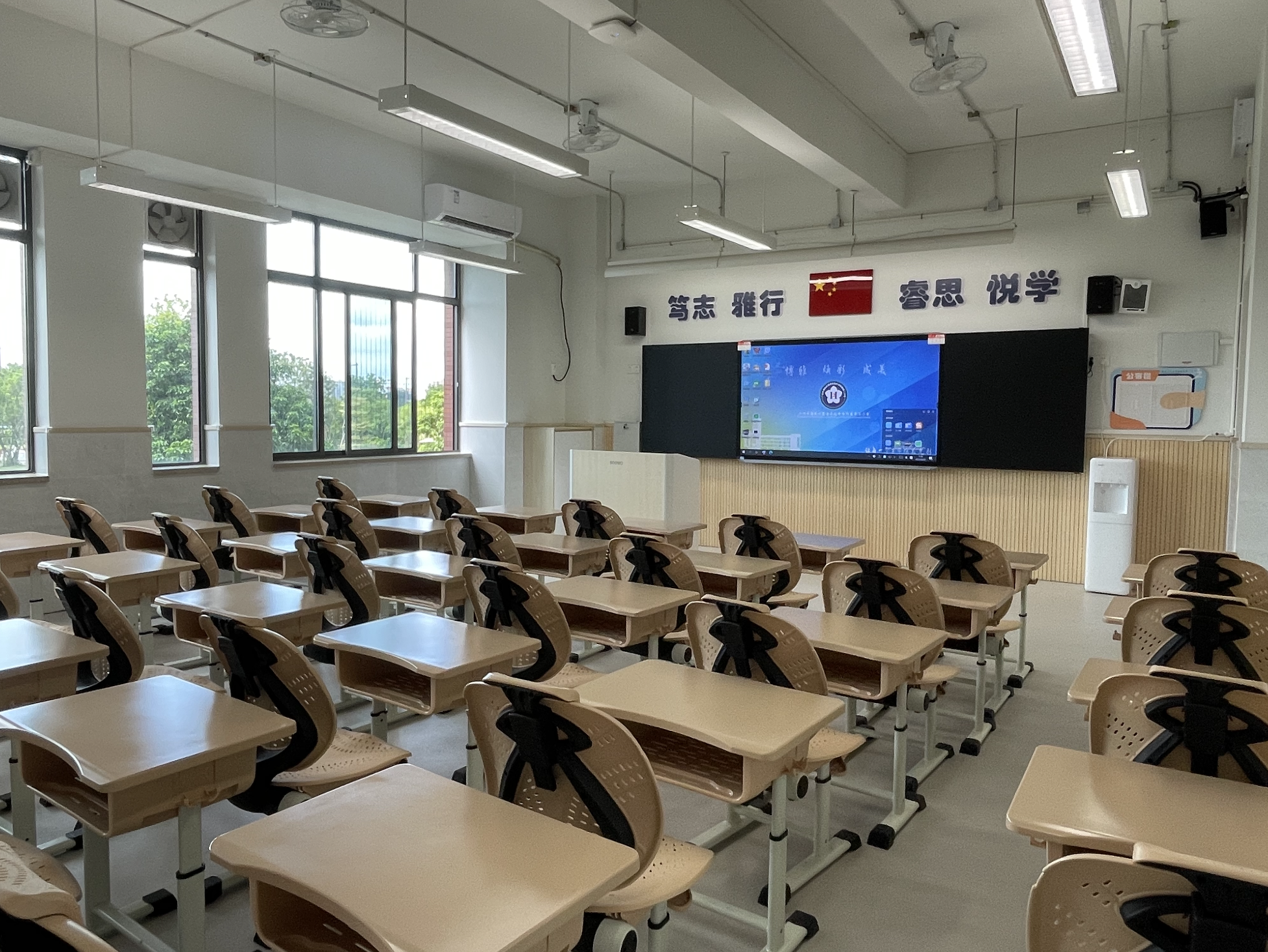 隽新学校设有24间小学课室、12间初中课室,并设有生物、化学、物理专业实验室以及音乐、舞蹈室,今年首批招收小学一年级、初中一年级各4个班。