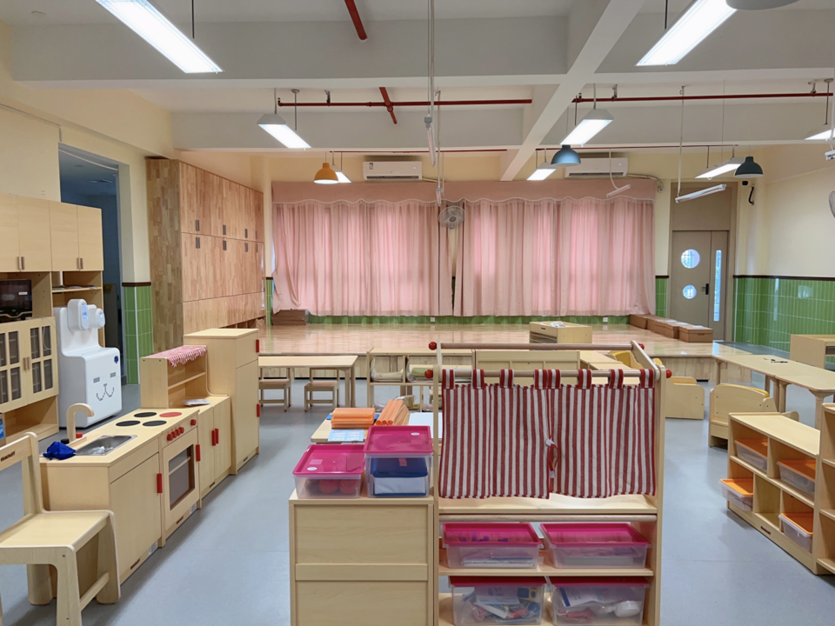 园所设置了满足幼儿体育锻炼的功能型大型器械、30米塑胶直跑道、球区、运动区、钻爬区、沙水区、泥巴区、种植区等,为幼儿提供广阔的运动空间。结合园本课程,幼儿园还设置了多功能室、音体室、美工室、科学室、阅览室等场室,以丰富的教玩具满足幼儿充分游戏、探究的需要,为幼儿自我学习、自主发展提供物质保障。