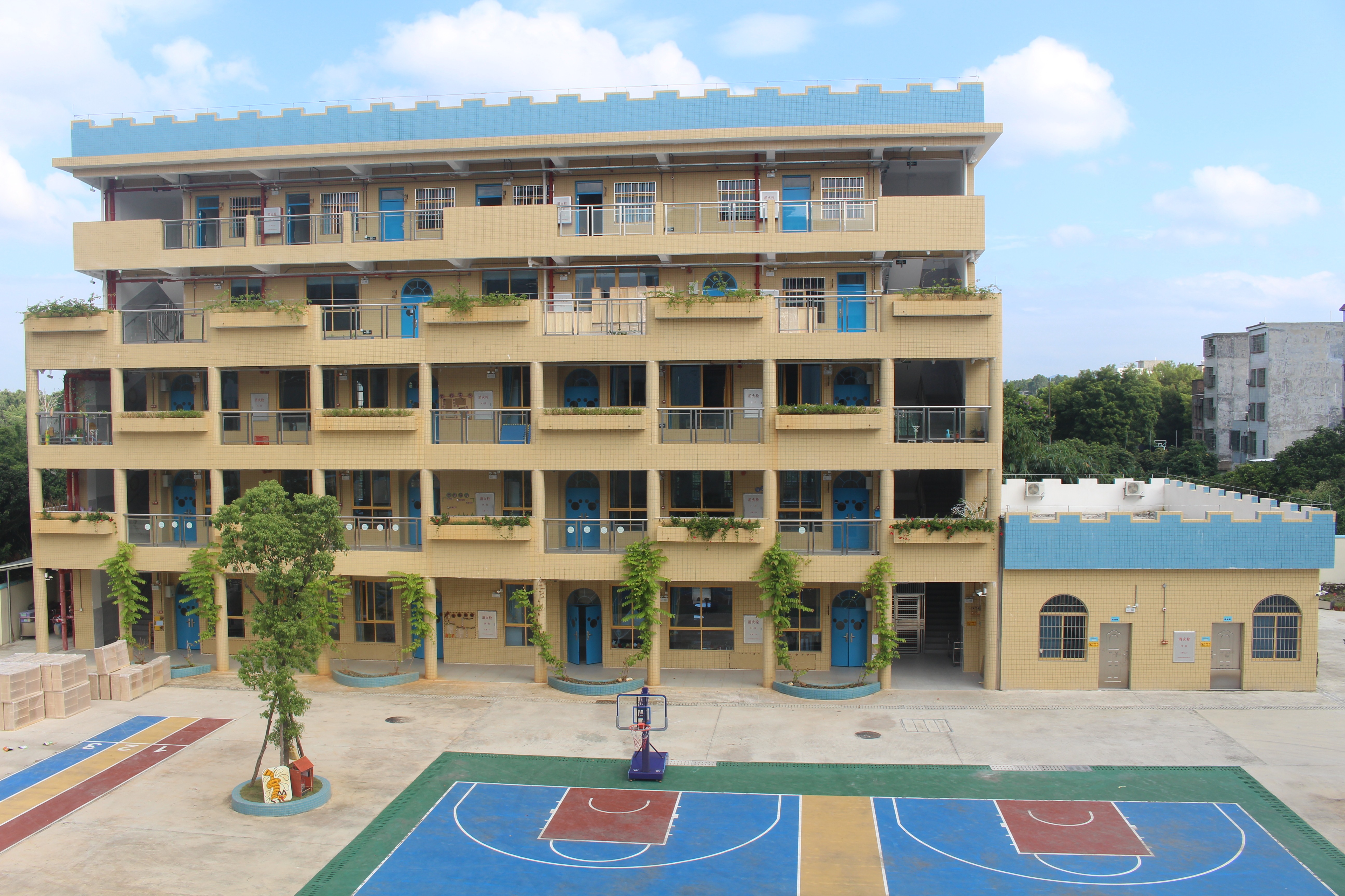 幼儿园按照广东省一级幼儿园标准建设,占地面积8220.7平方米,建筑面积5735.79平方米,户外面积5518平方米,办园规模为18个班。