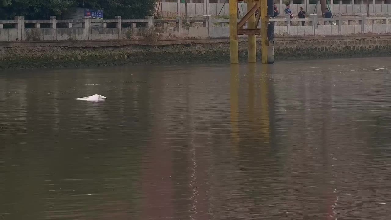 一名垂钓者告诉记者,中华白海豚所在河道中心深约4米,两岸水位较浅。“目前河道处于退潮期,下次涨潮要到晚上七八点。”他说。