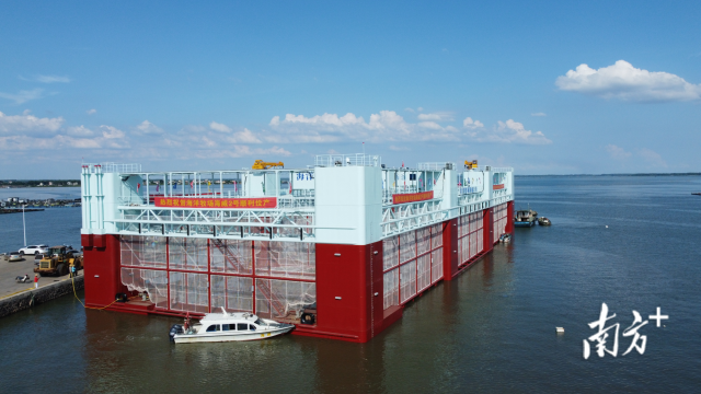 今年以来,广东沿海地市加快“挺进深蓝”。图为广东最大的海上养殖平台“海威2号”在湛江顺利下水。张令 摄