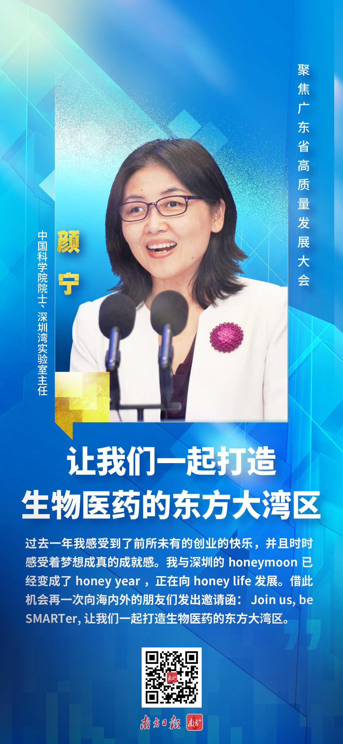 “我感到非常幸运,在粤港澳大湾区飞速发展的过程中, 我不是旁观者,而是一名建设者。”她还不忘借此机会向海内外人才发出邀请函: Join us, be SMARTer(加入我们,成为深圳医学科学院人),一起打造生物医药的东方大湾区!