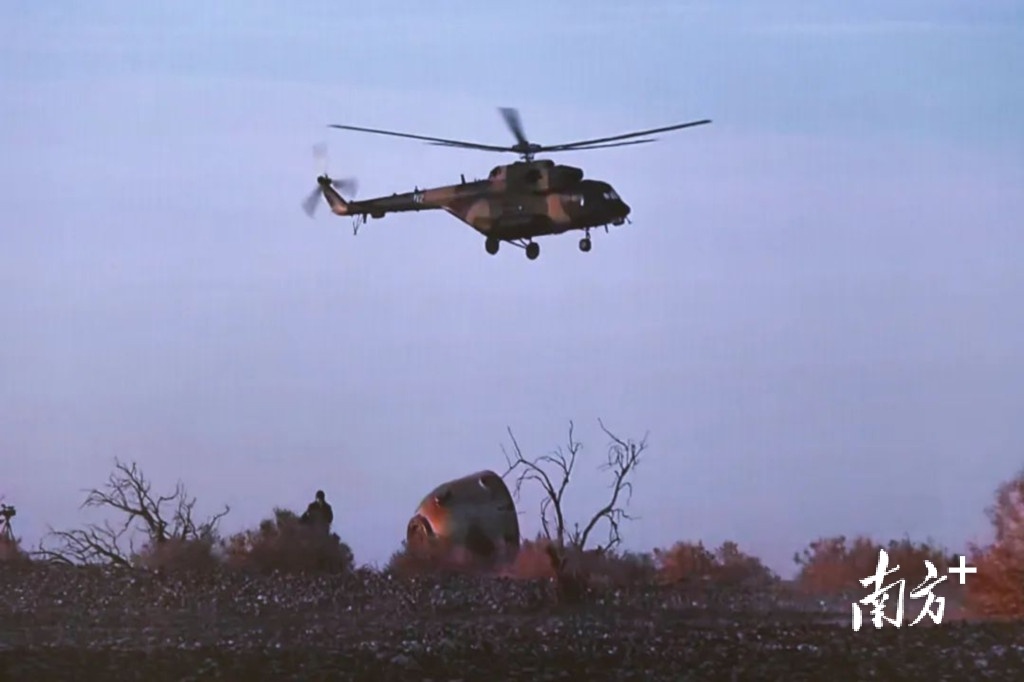 北京时间10月31日8时11分,神舟十六号载人飞船返回舱在全方位无缝监视下徐徐降落,反推发动机在距离地面一米的高度成功点火,飞船稳稳成功着陆。而此时的着陆区上空,五架直升机正在目视飞船降落,指挥机第一个降落在距离飞船最近的空地上,其他几架飞机依次降落。“舱落机临人到”,搜救队员们在这个阳光明媚的清晨,再一次创造了奇迹。