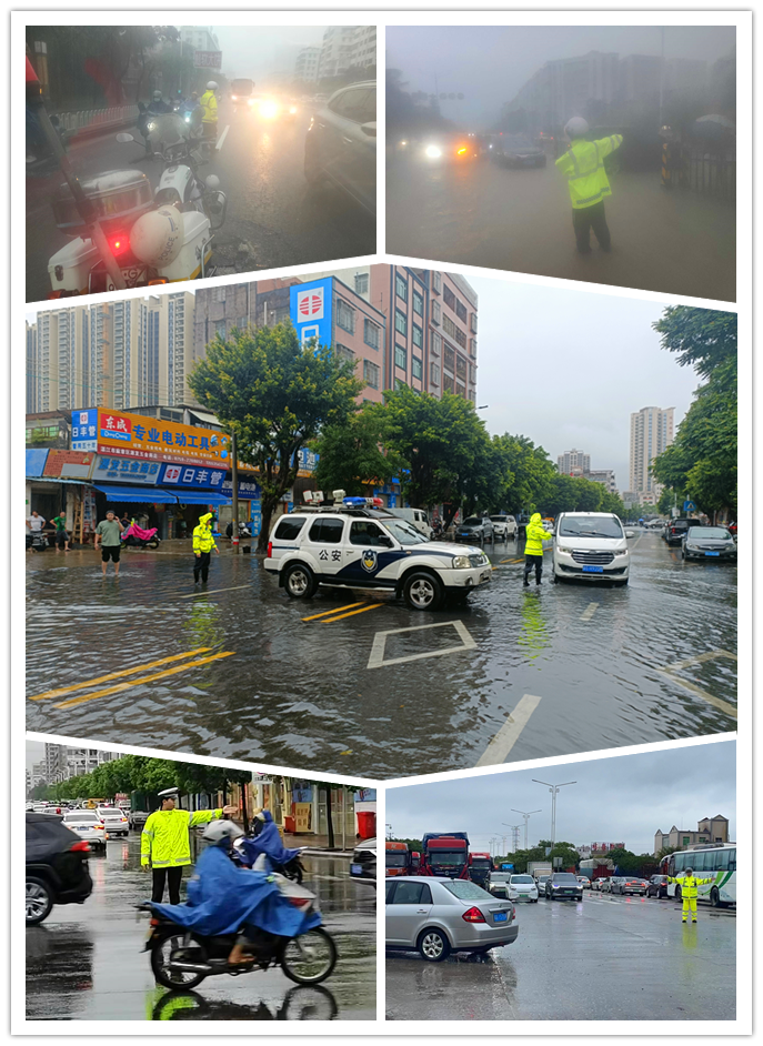 湛江交警全体民辅警雨中坚守,在滂沱暴雨中筑牢坚强交通安全屏障:徒手清理排水渠,救助雨中受困群众脱险,拖移积水淹没车辆,指挥车辆行人安全有序通行……有力有效保障了群众生命财产安全,勾勒出暴雨中的最美“ 警色 ”,用实际行动为群众撑起了一把“ 安全伞 ”
