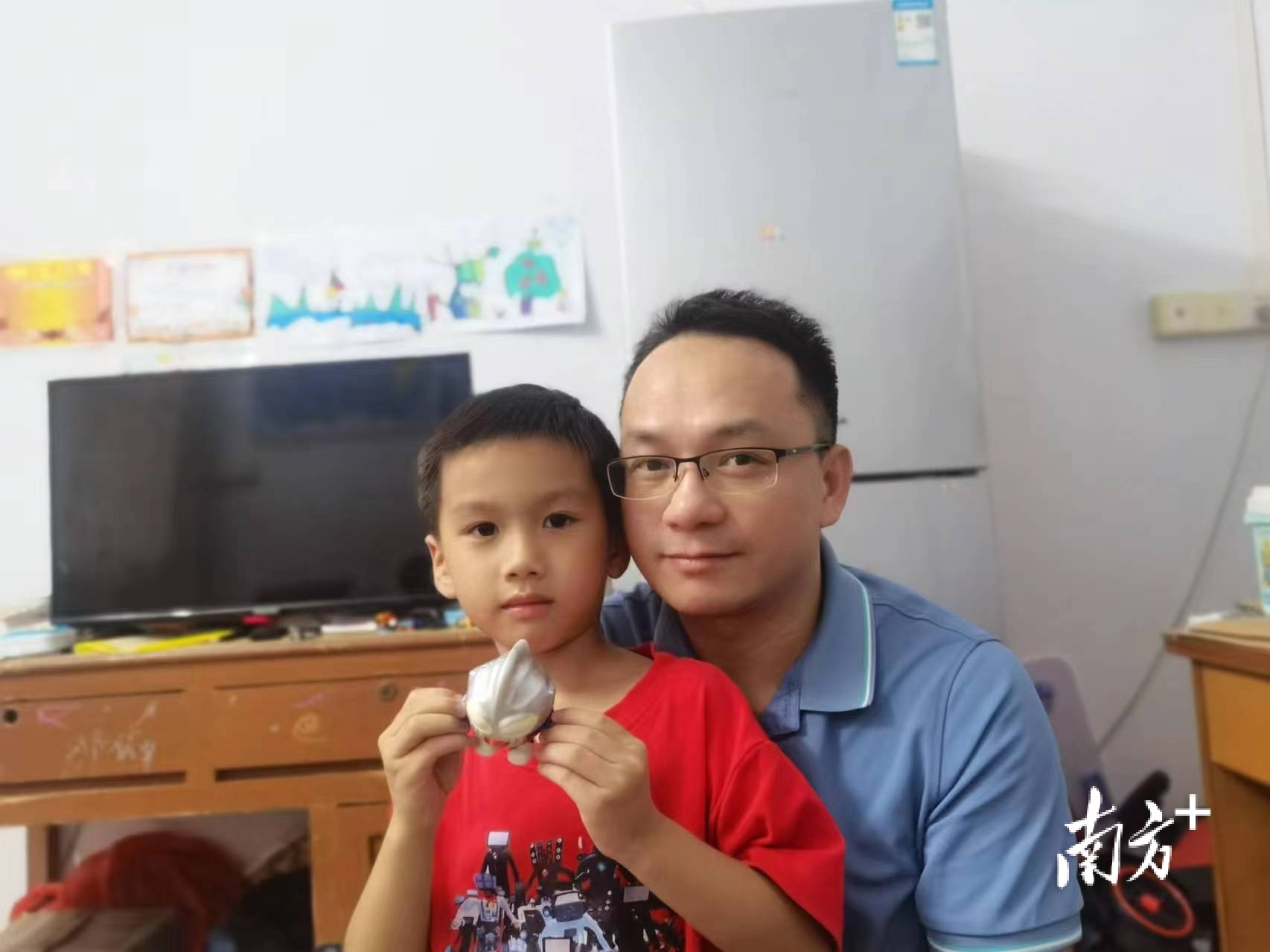 恩平市第一幼儿园梁锦骏和爸爸合照。