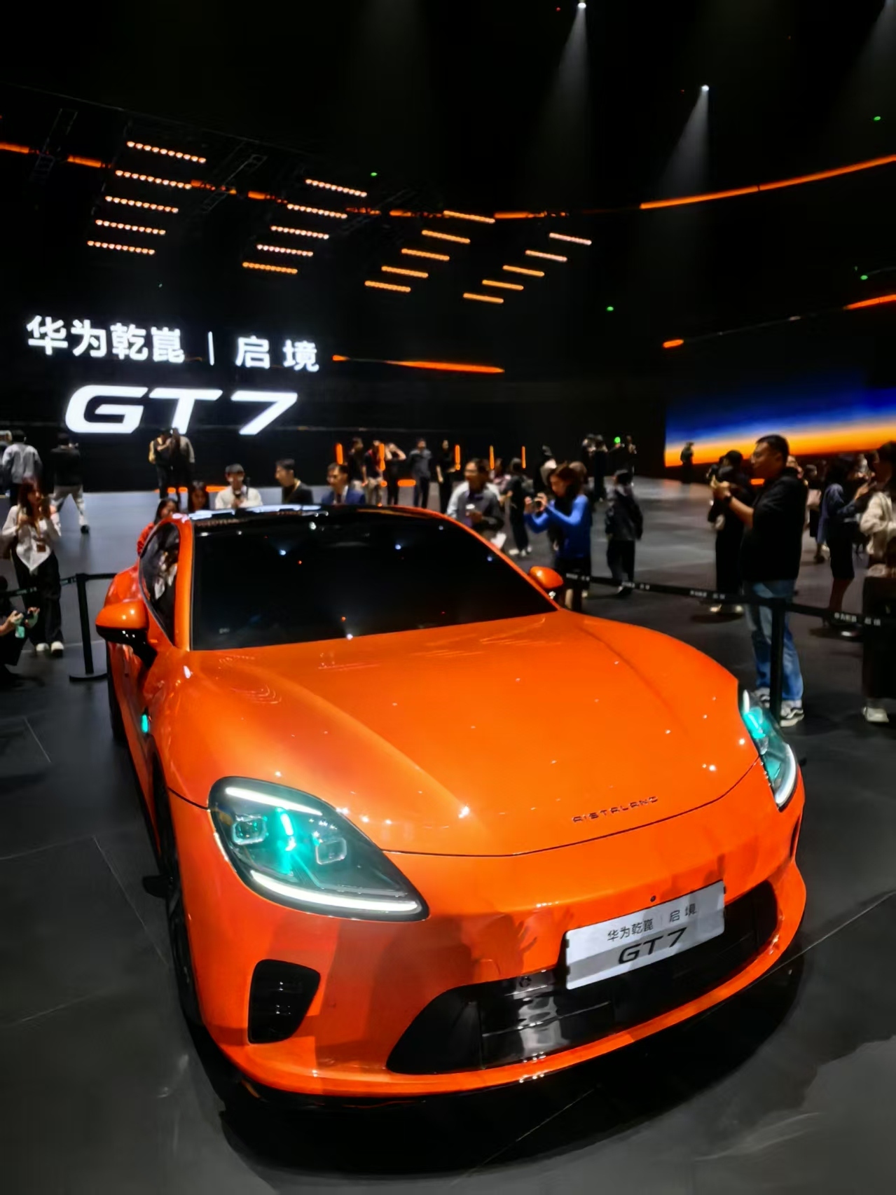 首发亮相的启境GT7定位为智能猎装车型。在硬件与智能配置上,该车搭载了896线激光雷达、华为乾崑智驾ADS、鸿蒙座舱大模型以及HUAWEI XMC乾崑数字底盘引擎,同时配备三电机系统与定制麒麟电池,通过技术融合提升车辆的智能与驾控表现。