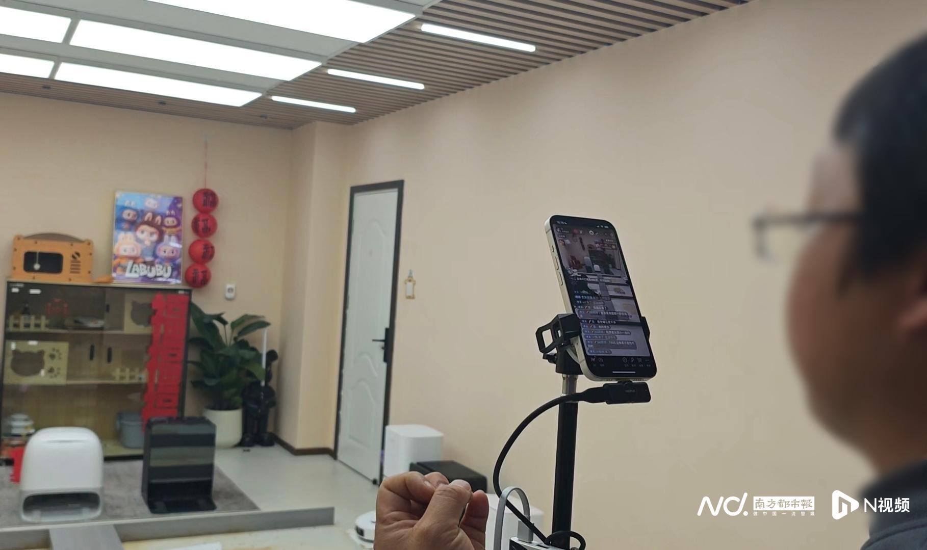 “严*扫地机-金牌讲师”直播间,实习主播正在试播。南都N视频记者拍摄